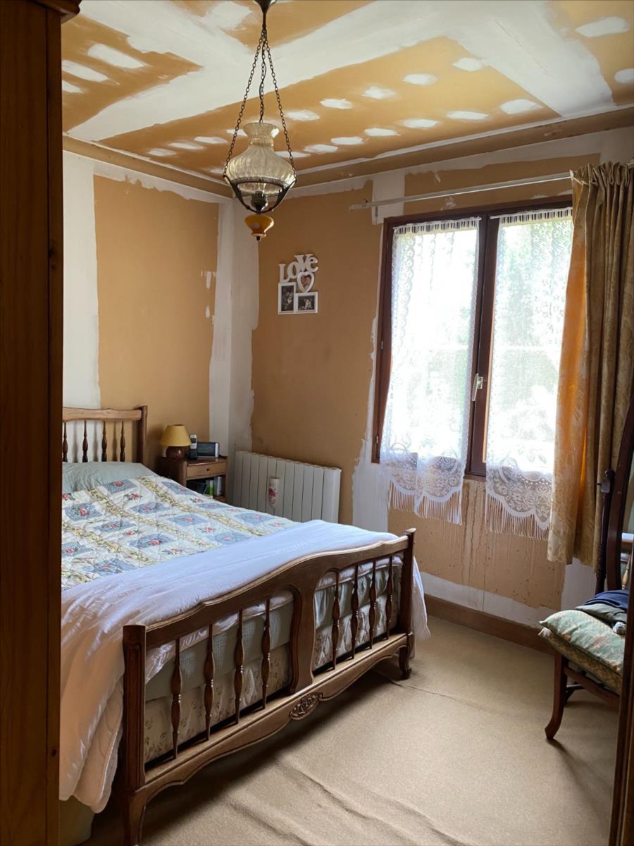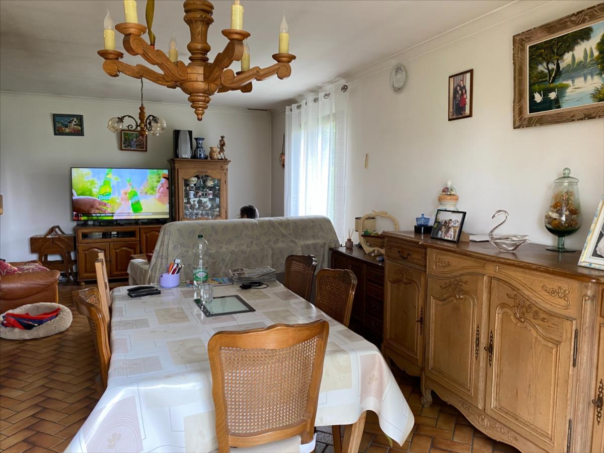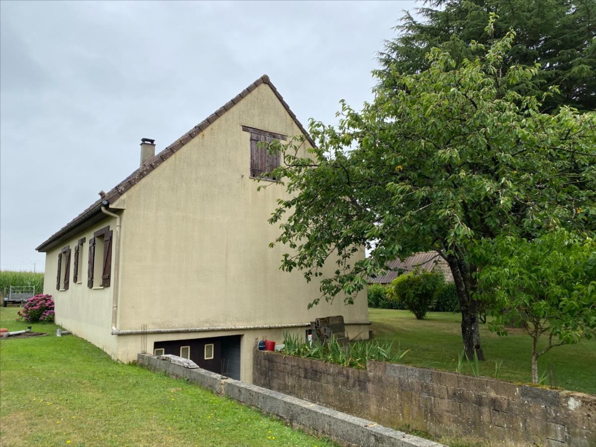 Pavillon sur sous sol construit en siporex et recouvert de tuiles mécaniques comprenant:- entrée avec placard, séjour-salon avec cheminée-insert, cuisine, couloir, 3 chambres (2 avec placard), salle de bain, wc.- combles non aménagés- s/sol: garage, atelier, cave, remiseChauffage au bois (insert avec répartiteur de chaleur) et électriqueRaccordé au tout à l'égoutTerrain 1250m²