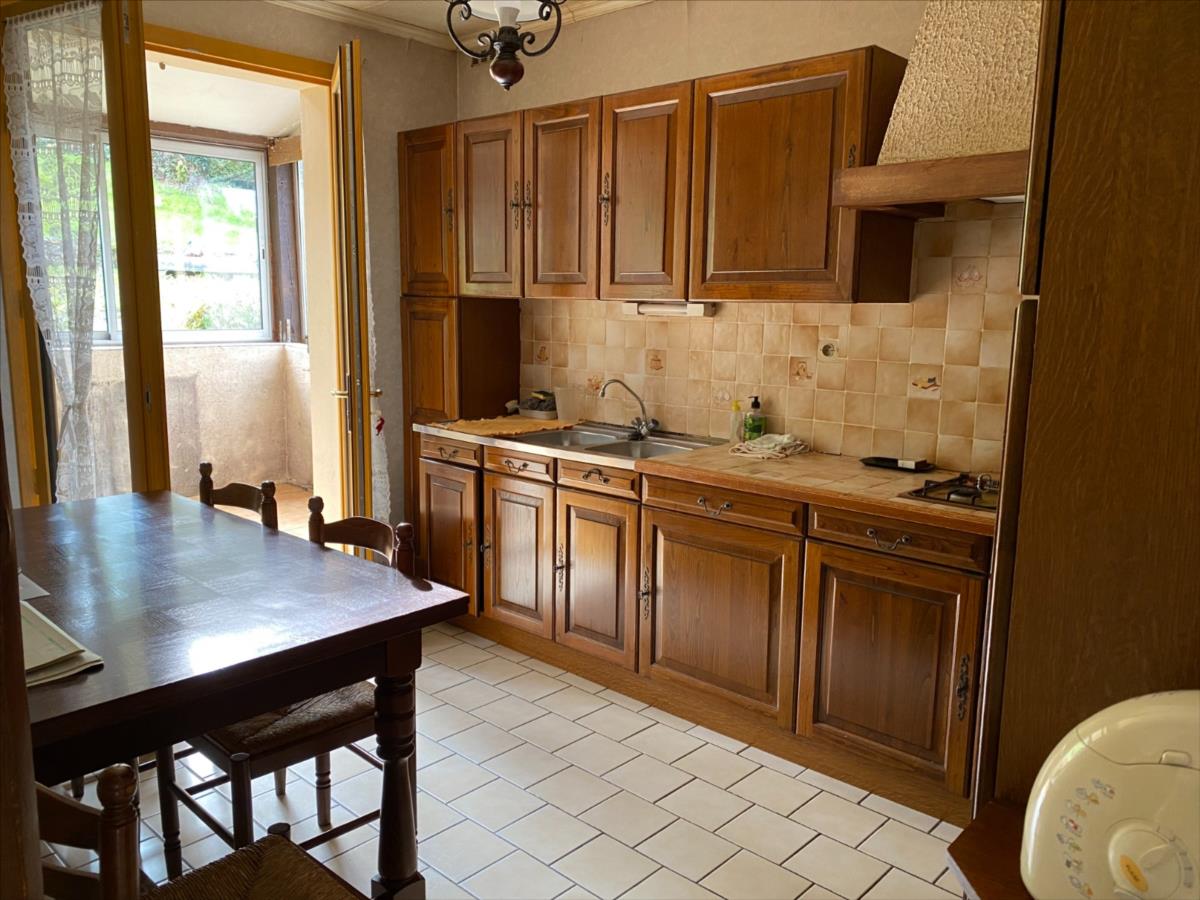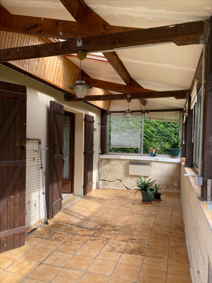 - au rez de jardin: véranda, cuisine aménagée et équipée (four, plaque et réfrigérateur) ouverte sur séjour-salon avec cheminée-insert, couloir, 3 chambres, salle de bain complète, wc.