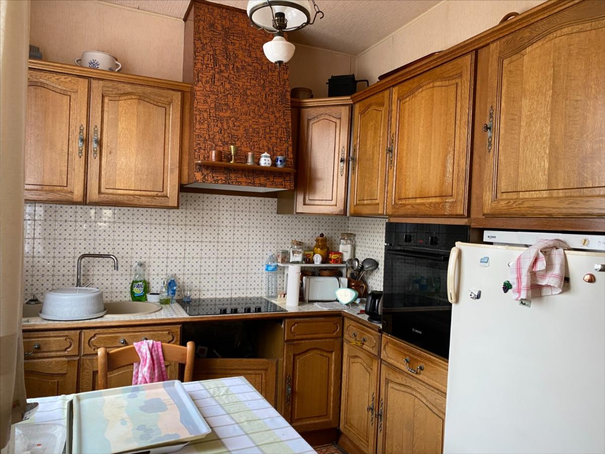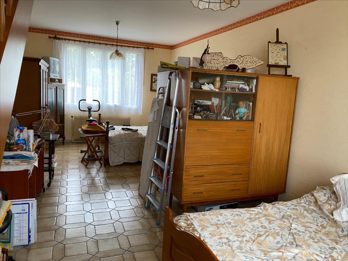 Pavillon sur sous sol construit en pierres et briques, couverture tuiles mécaniques, comprenant:- au RDC surélevé: sas d'entrée, entrée, cuisine aménagée et équipée (four, plaque indiction, hotte, réfrigérateur), séjour-salon, chambre parquetée, chambre double, salle de bain, wc.
