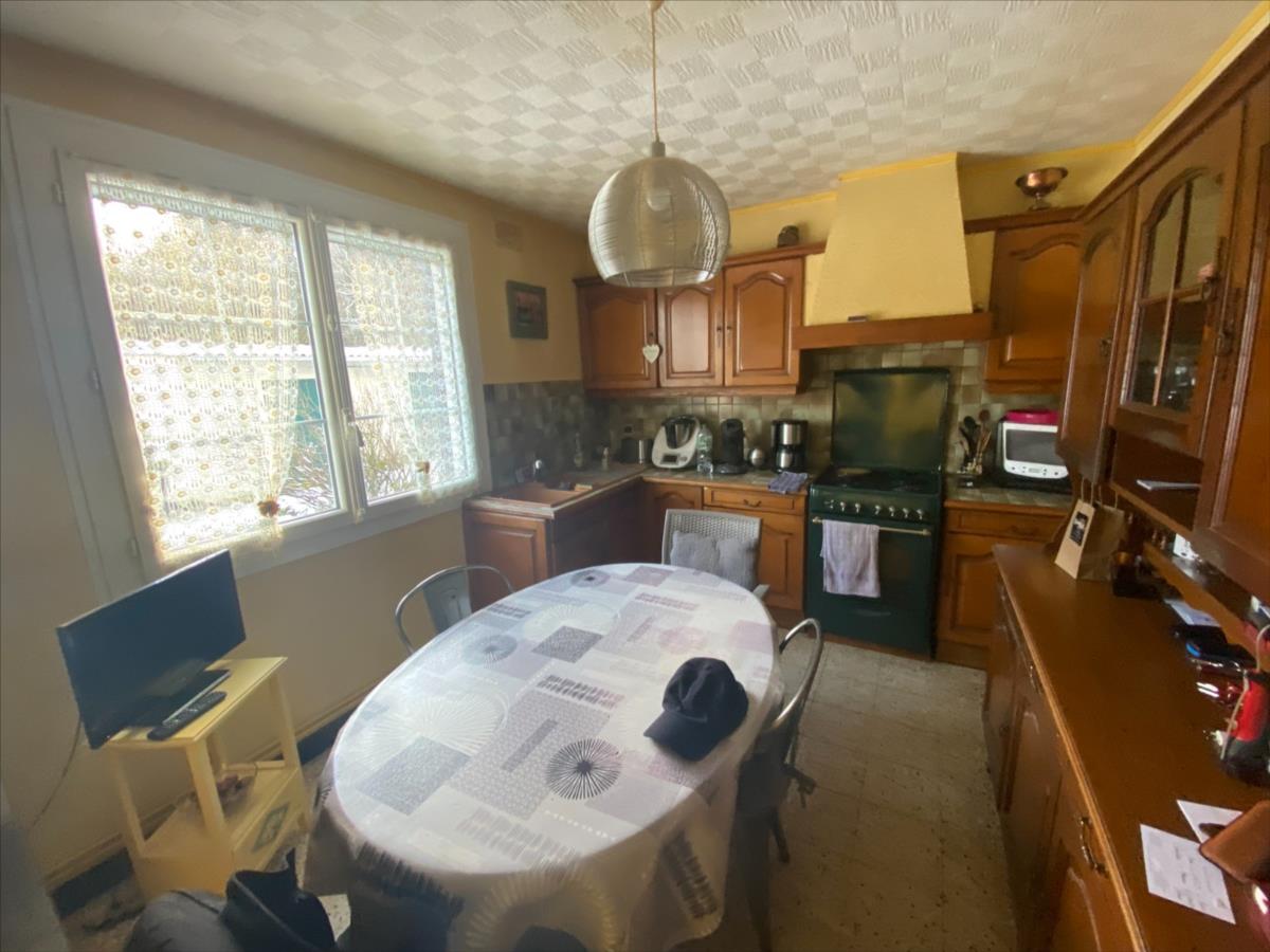 - au rez-de-chaussée : une entrée, deux chambres, une cuisine, un grand séjour, une salle d'eau et un WC. - à l'étage : deux chambres et un débarras.