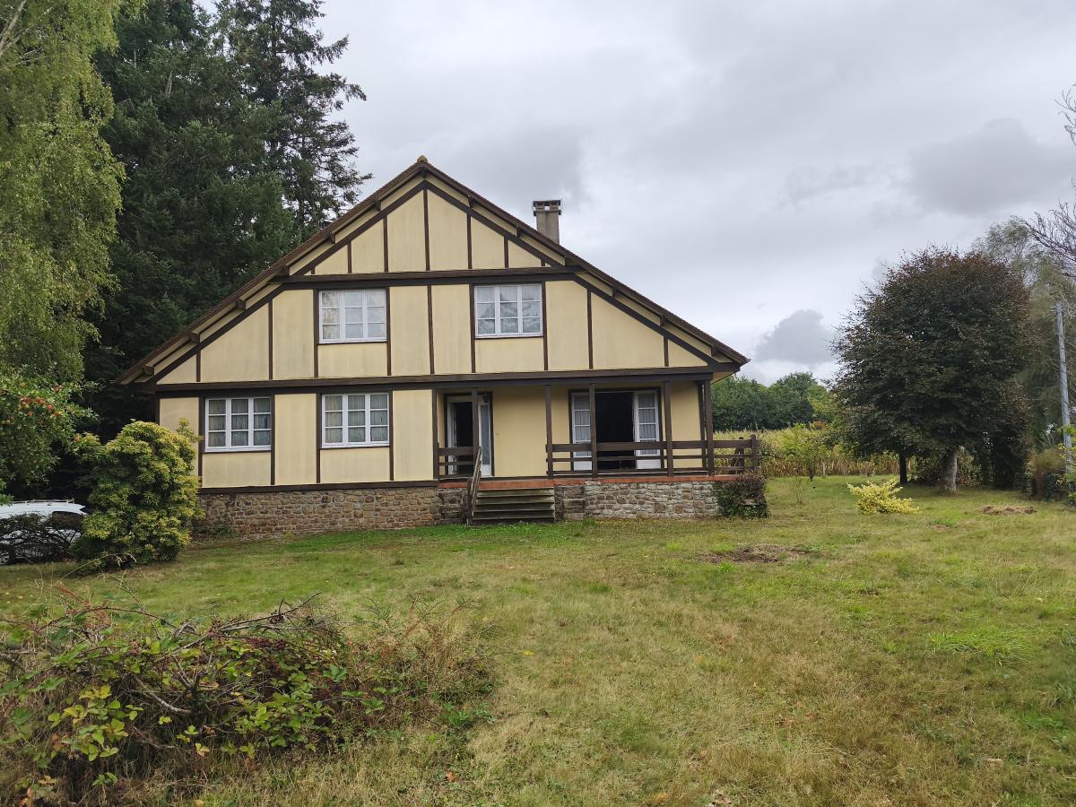 Dans hameau en campagne, Maison construction bois de 7 pièces principales (env. 145 m²) sur sous-sol, sur env. 1.500 m² de terrain.