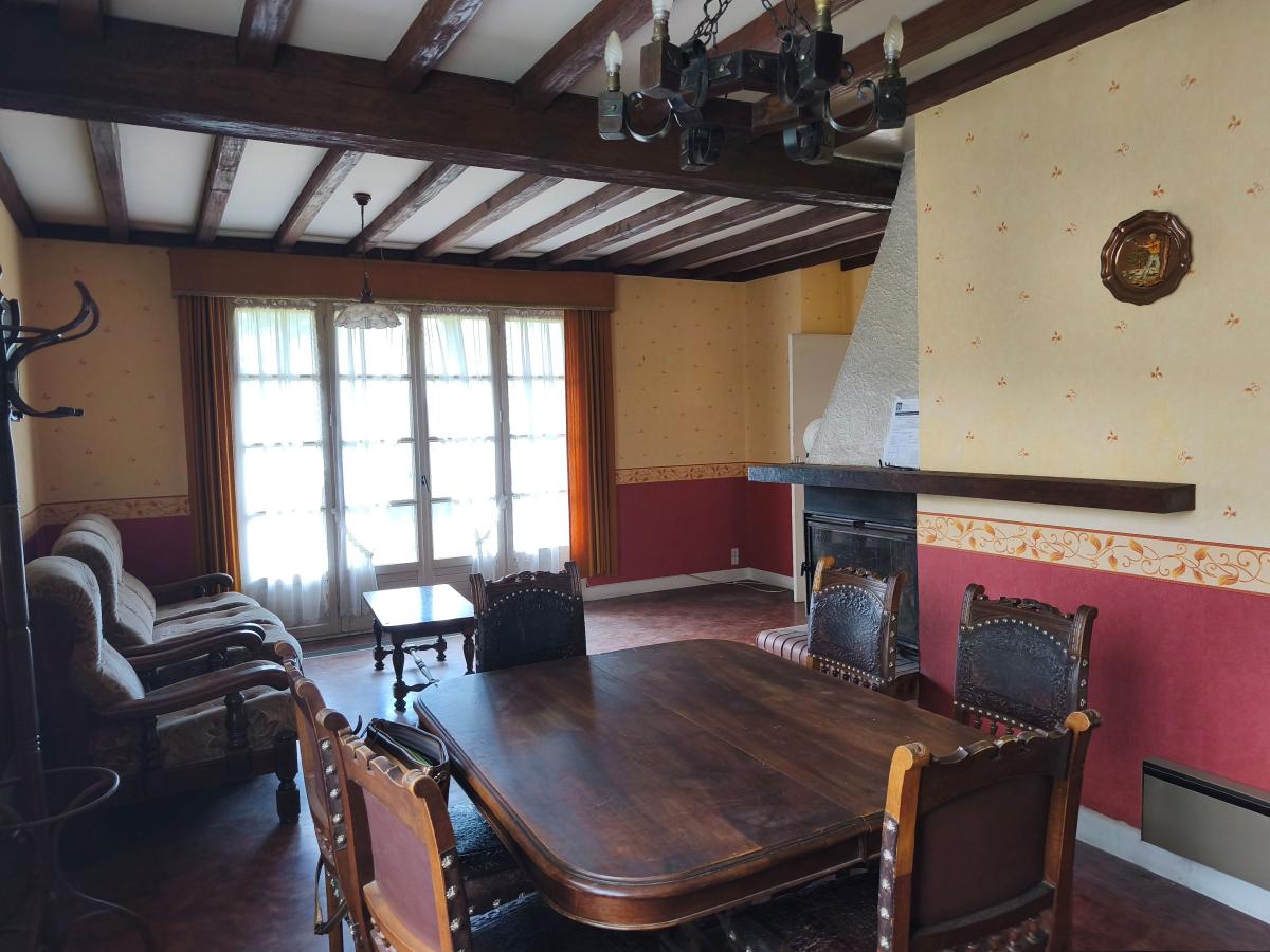 Au sous-sol : garage, cave, une pièce, buanderie et bûcher.