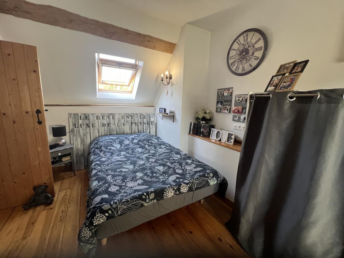 . Au RDC : séjour/salon avec poêle à bois, cuisine équipée, salle d'eau, WC ;