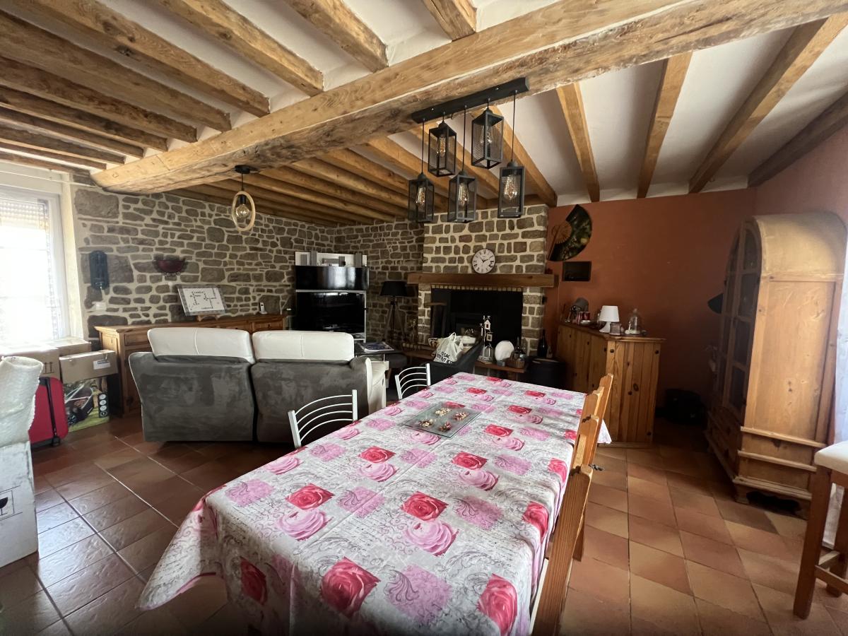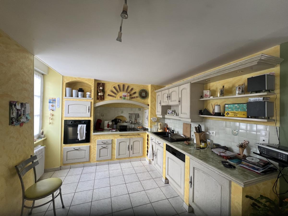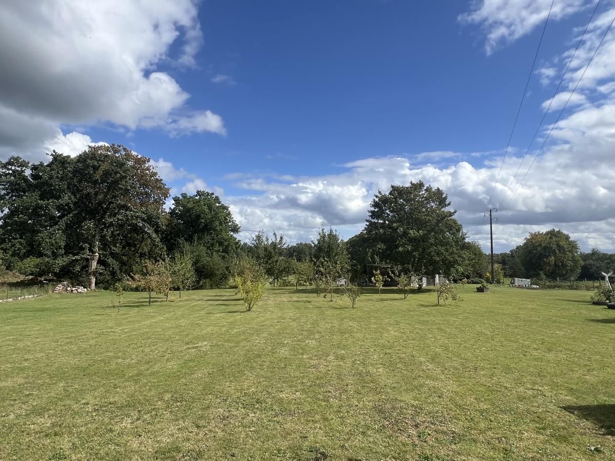 Chauffage au gaz de ville, fenêtres PVC double vitrage . Terrasse dallée avec store banne donnant sur grand terrain plat de 3100 m² classé en zone constructible.