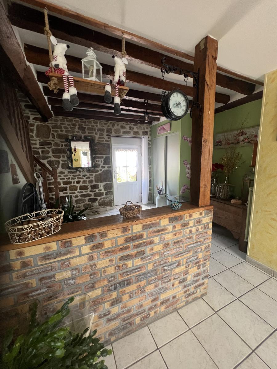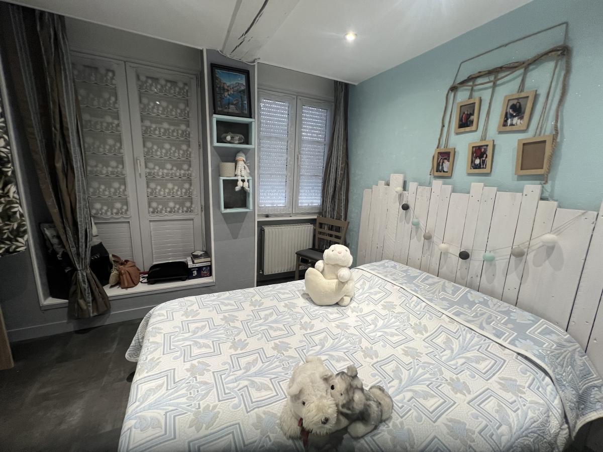 . Au RDC : entrée avec placard, cuisine équipée, séjour avec insert à granulés, chambre, salle d'eau/WC; buanderie, cave ;