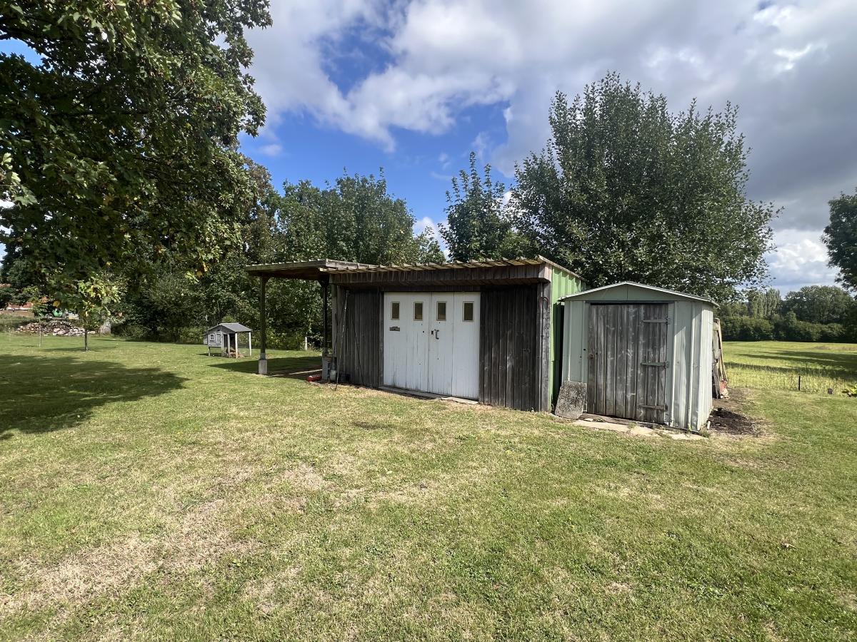 Appentis en côté pour une voiture, petit garage dans le fond du terrain avec appentis.