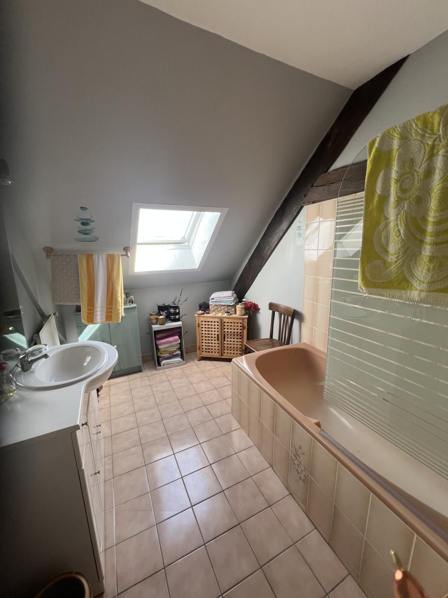 . A l'étage : vaste palier, 3 chambres dont une avec dressing, bureau, salle de bains, WC.