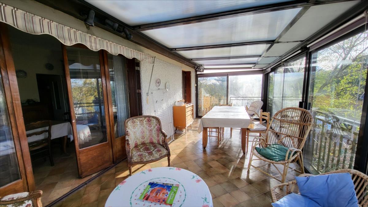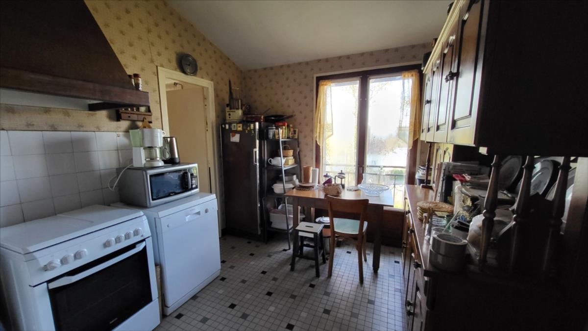 Pavillon de 130 m² sur 1041 m² : entrée et couloir desservant : cuisine, séjour, véranda, quatre chambres parquetées, salle de bains, wc, cabinet de toilettes; sous-sol total avec garage, atelier, ancienne chambre et salle de bains.