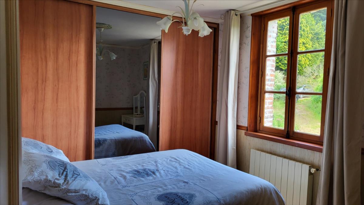 Maison en brique et colombage de 141 m² comprenant séjour avec deux cheminées, cuisine rustique aménagée et équipée, arrière cuisine-buanderie, salle de douche, wc séparés, une chambre avec vue sur la nature. Au 1er étage : palier desservant quatre chambres, salle de bains d'angle avec wc; au 2ème grenier aménageable. Chauffage par pompe à chaleur (2 ans) et chauffe-eau solaire. Gite à l'entrée de la propriété (sans à vis à vis avec la maison qui est en contrebas), rénové comprenant séjour ouvert sur coin cuisine, salle de bains avec baignoire d'angle et wc; à l'étage : deux belles chambres mansardées - Environnement très vallonné au grand calme. Partie verger à l'arrière de la maison; Terrain très arboré avec ruisseau en contrebas et petit étang.