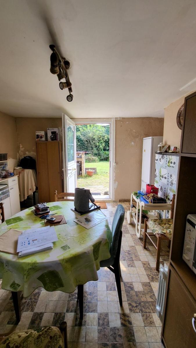 En campagne avec vue dégagée, maison en brique à rénover comprenant entrée avec escalier, cuisine, séjour, salle d'eau, wc; au 1er étage : deux chambres; au 2ème étage : grenier aménageable; dépendance attenante en colombage à usage de cellier et atelier, l'ensemble sur 1175 m². Les informations sur les risques auxquels ce bien est exposé sont disponibles sur le site Géorisques : www. georisques. gouv. fr