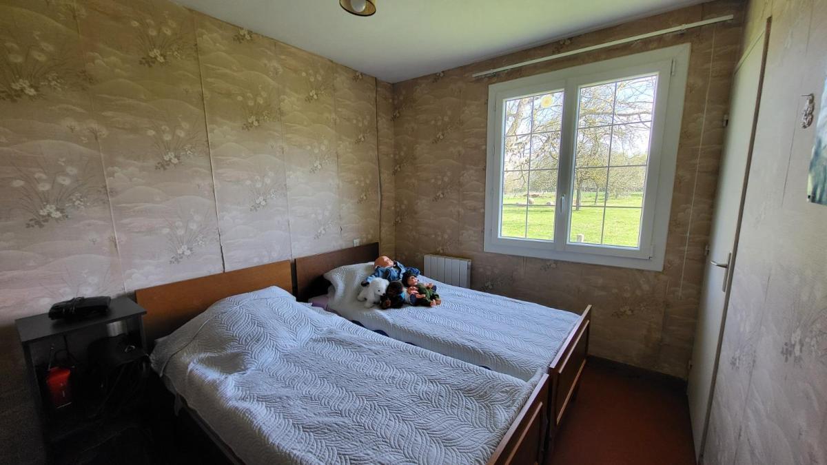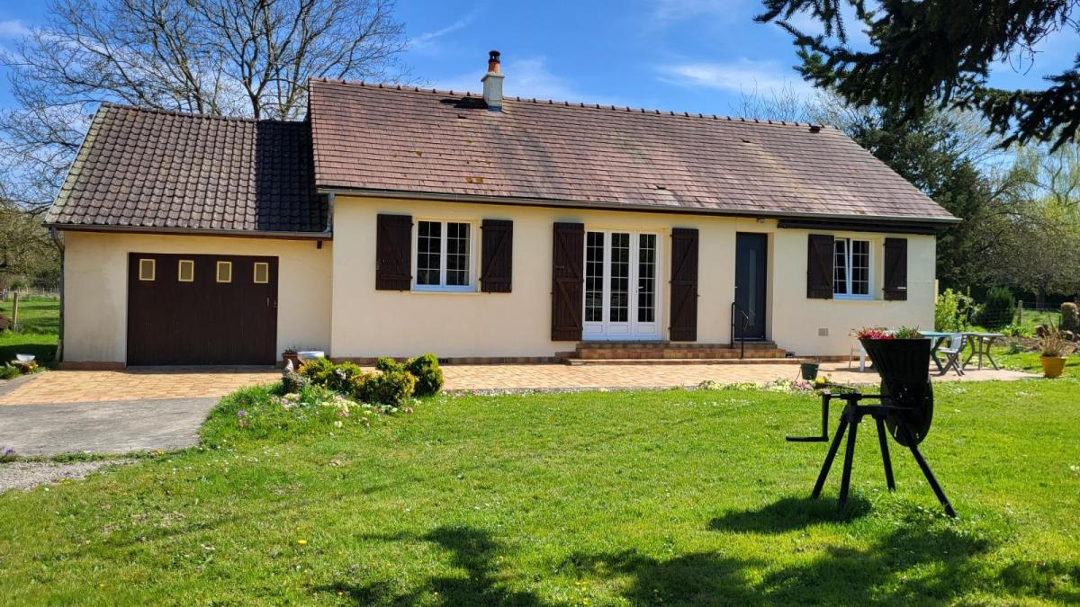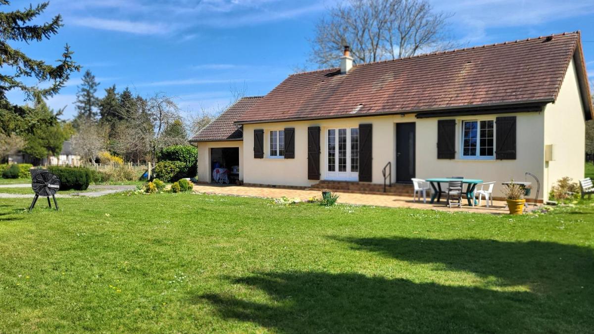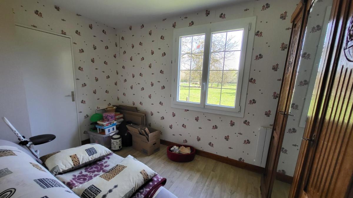 Propriété sur 3ha plats avec dépendances en campagne, au calme. Pavillon de plain-pied bien entretenu : entrée avec placard, séjour avec cheminée équipée d'un insert, cuisine aménagée rustique, couloir desservant trois chambres, salle de bains, wc séparés. Garage attenant avec point d'eau. Trois dépendances dont un ancien four à pain. Les informations sur les risques auxquels ce bien est exposé sont disponibles sur le site Géorisques : www. georisques. gouv. fr