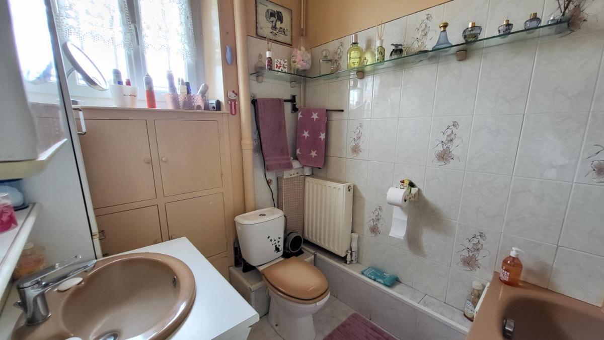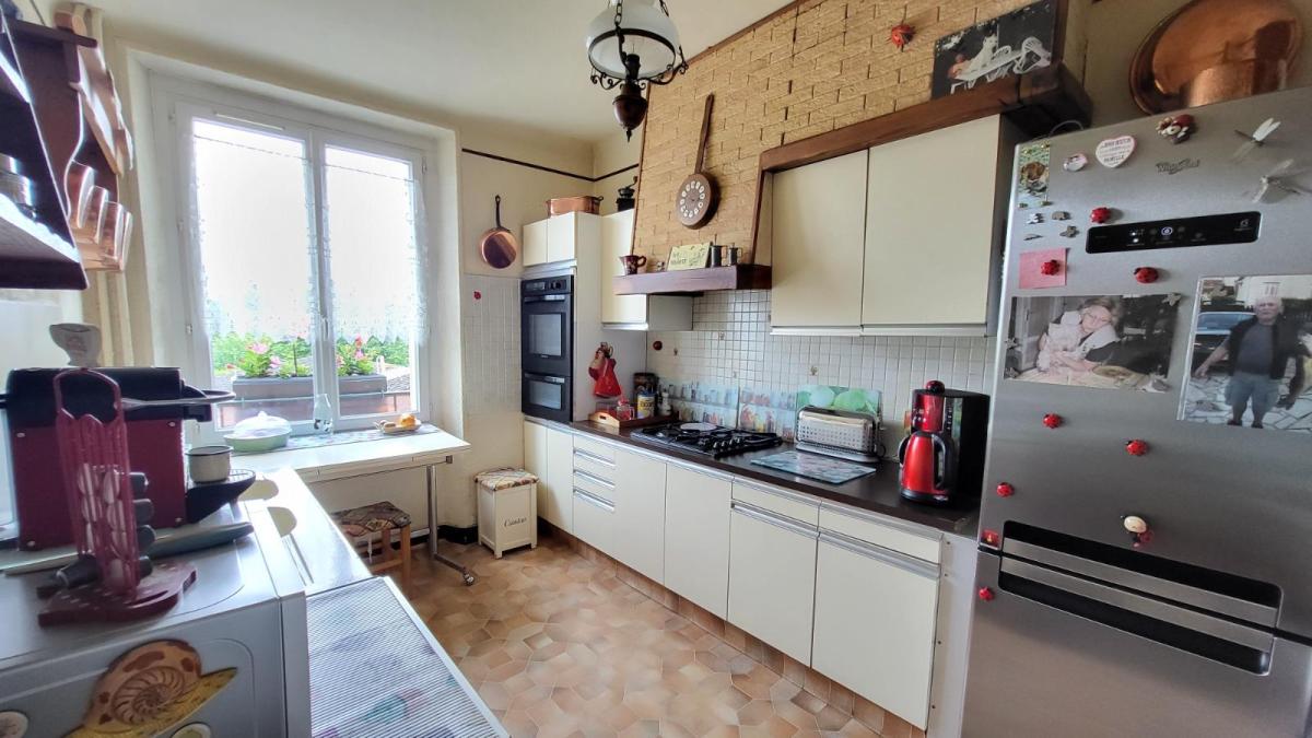 En centre ville avec tous commerces, immeuble comprenant : Au rez-de-chaussée local commercial d'environ 100 m² en bon état comprenant une pièce avec ancienne vitrine, dégagement avec wc et quatre pièces, réserve ; au 1er étage et par accès indépendant : appartement loué d'environ comprenant : au rez-de-chaussée : deux garages cimentés; entrée avec escalier donnant sur le 1er étage : cuisine aménagée, séjour, salle de bains avec wc ; à l'étage : couloir et dégagement avec douche, deux chambres, bureau ; chauffage au gaz de ville; sous-sol avec chaudière au gaz ;