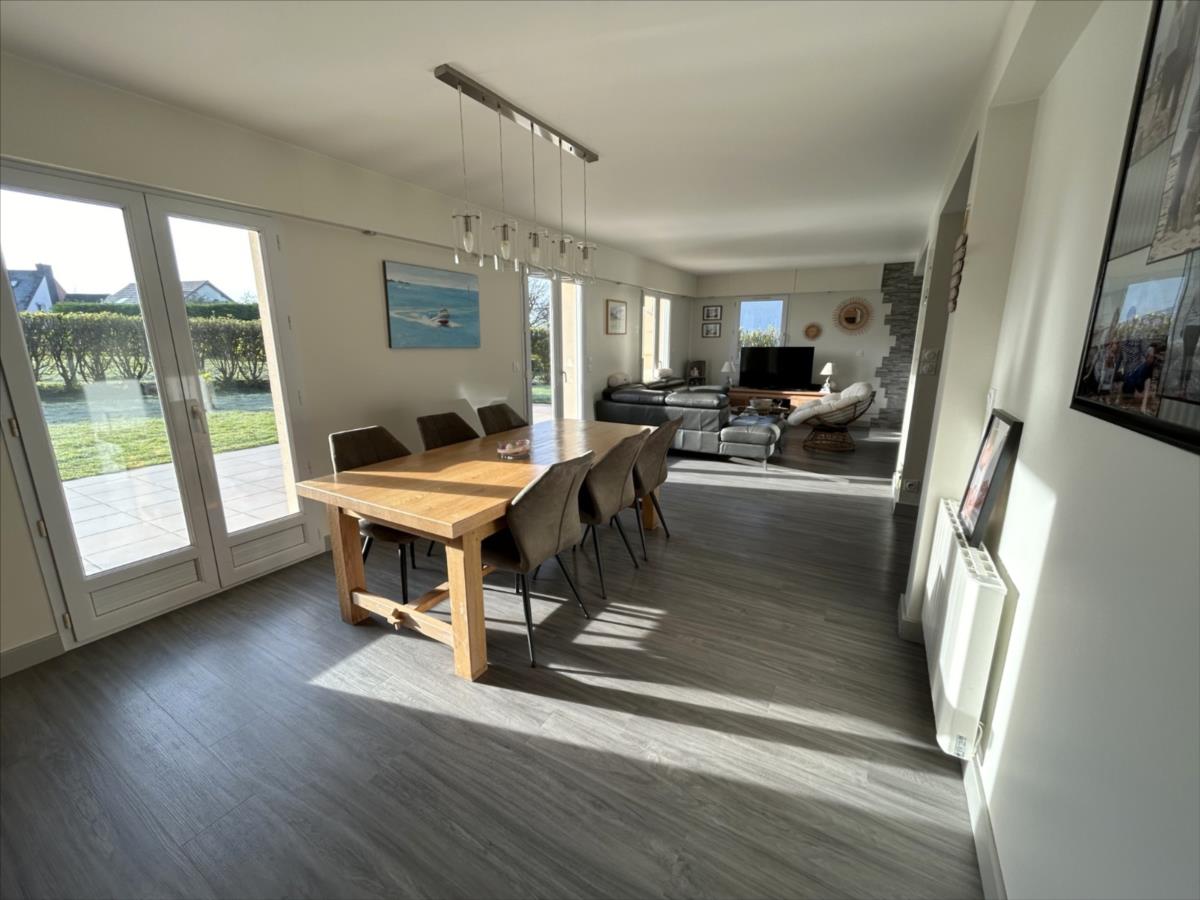 Belle maison dans les hauteurs d'Agon-Coutainville offrant de beaux volumes et une vie de plain pied. Au rez de chaussée : une entrée desservant une grande pièce à vivre salle à manger et salon avec poêle à granulés, un suite parentale avec dressing et salle d'eau, et une cuisine aménagée et équipée donnant sur le garage isolé.A l'étage, on trouve un palier desservant trois chambres, une salle de bain et douche, avec wc séparé. Possibilité de créer une chambre supplémentaire.