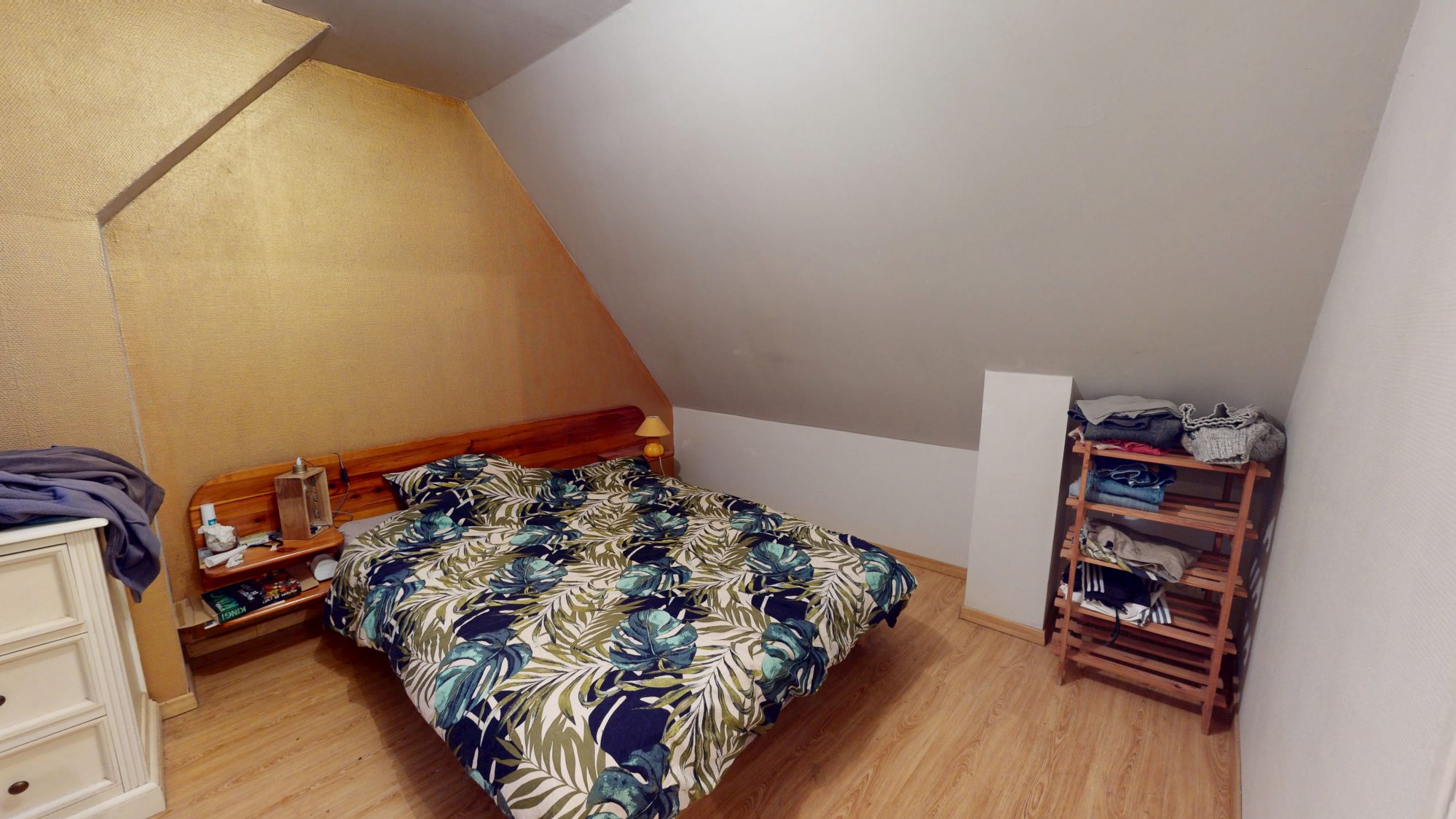 - Au rez-de-chaussée : Séjour/salon avec poêle à bois et cuisine ouverte, buanderie et WC.