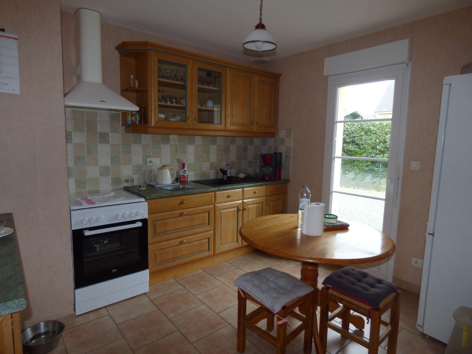 Au rez-de-chaussée : séjour-salon, cuisine aménagée, une chambre, WC, salle de bains, garage