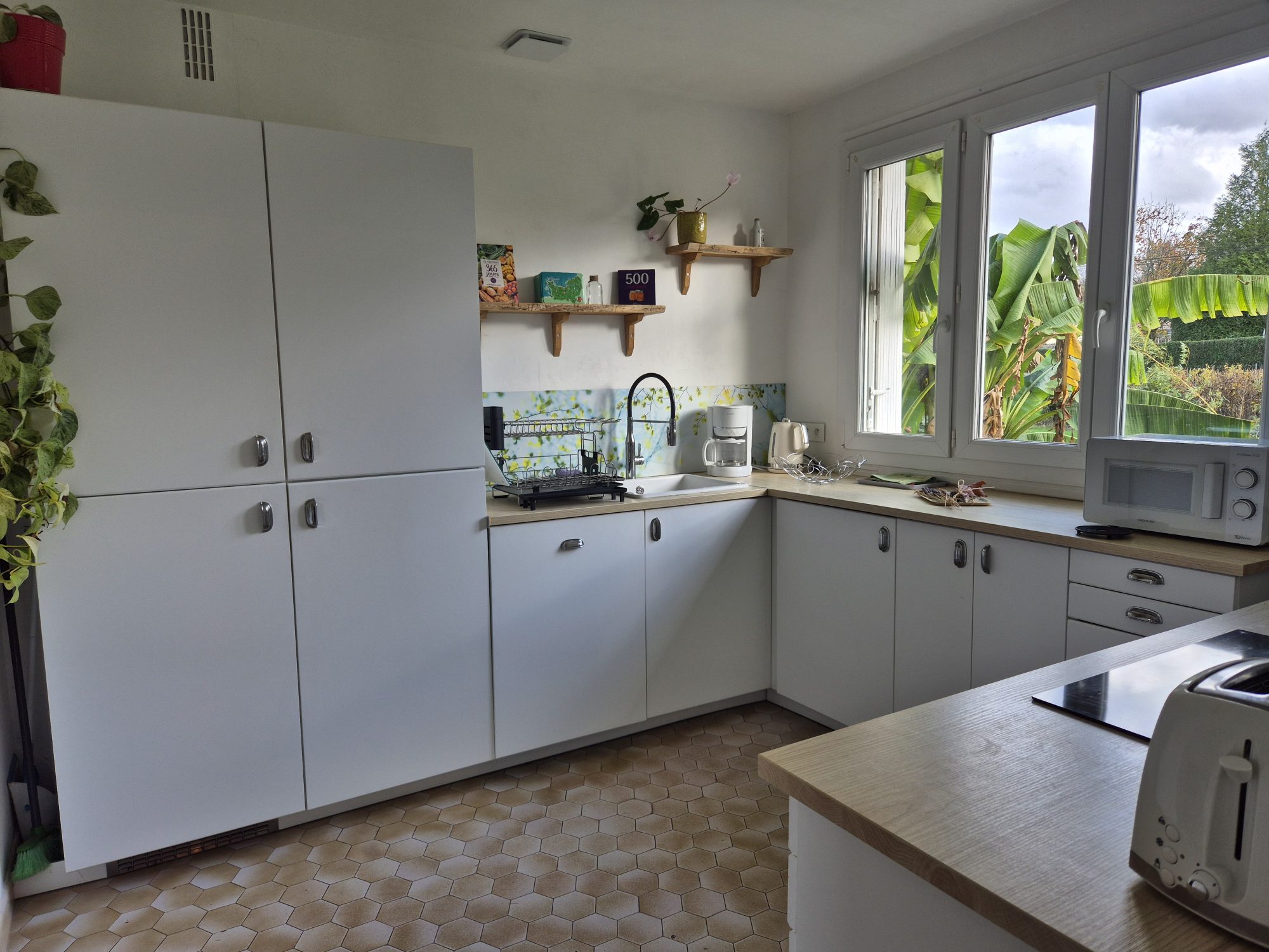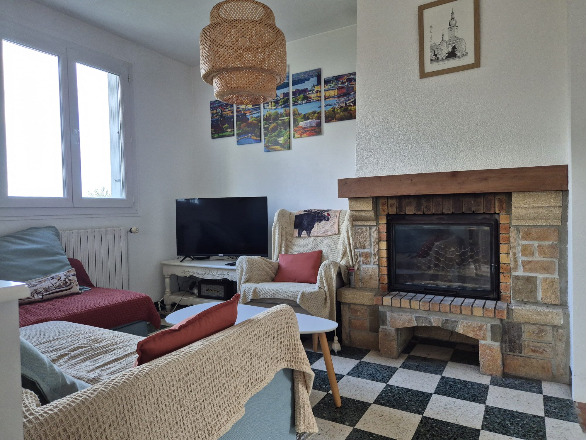 Elle comprend au rez-de-chaussée : une entrée, un séjour avec insert et balcon, une cuisine aménagée, trois chambres dont une avec un point d'eau, une salle de bains et un WC.