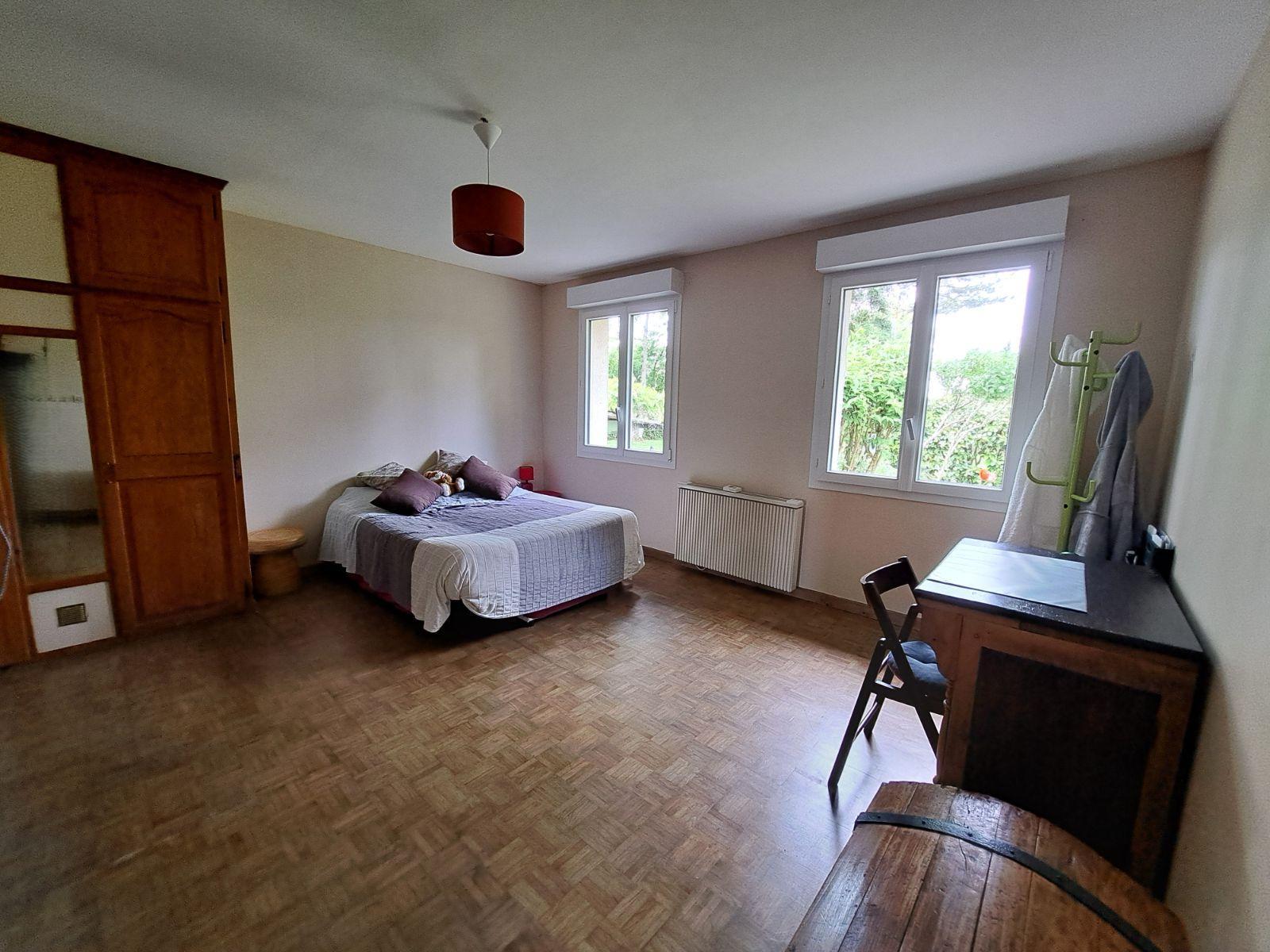 Une entrée, un couloir desservant la cuisine, un séjour avec cheminée ouverte et poêle à granules, une chambre, une salle d'eau, une chambre avec salle de bains, une seconde pièce de vie et une troisième chambre de 18m²;