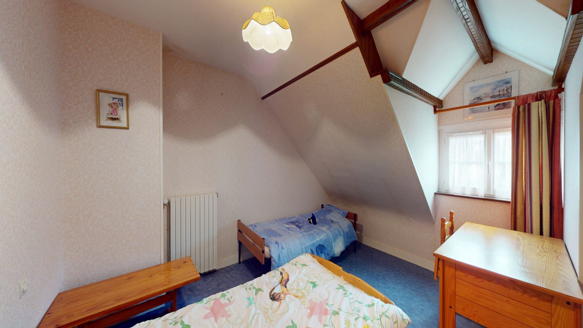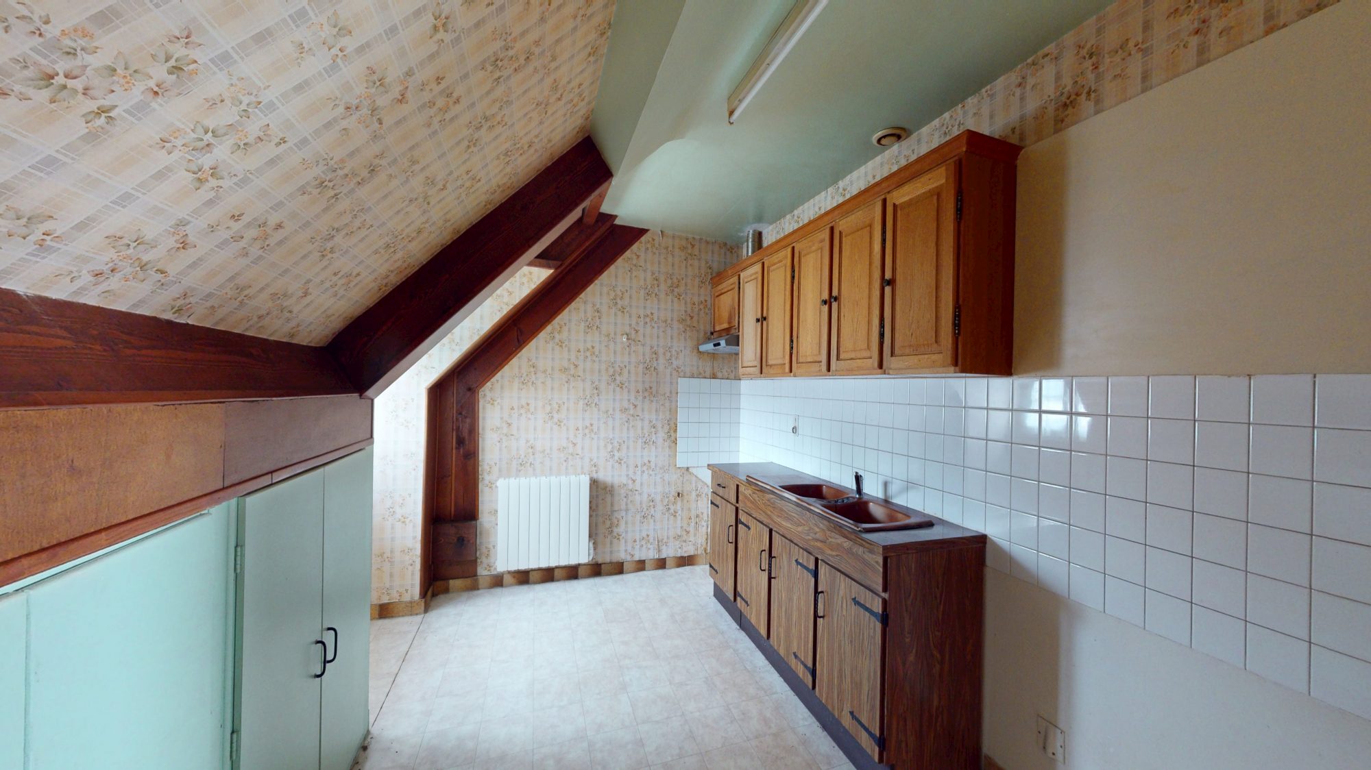- d'un second logement à l'étage, comprenant : couloir, salle de bains avec WC, deux chambres, cuisine et débarras.