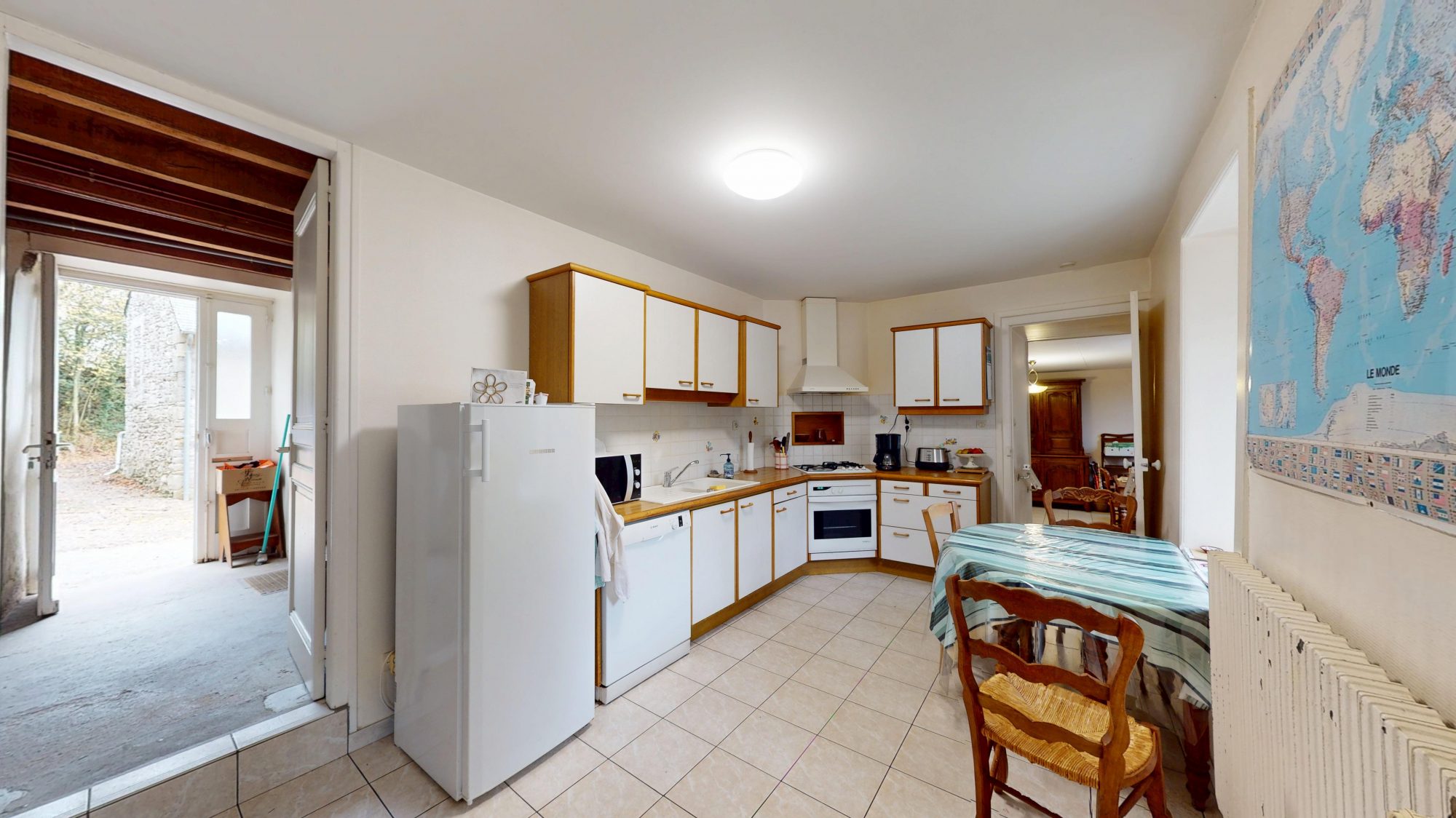 - au rez-de-chaussée : entrée, séjour avec cheminée, cuisine, chaufferie avec WC ;