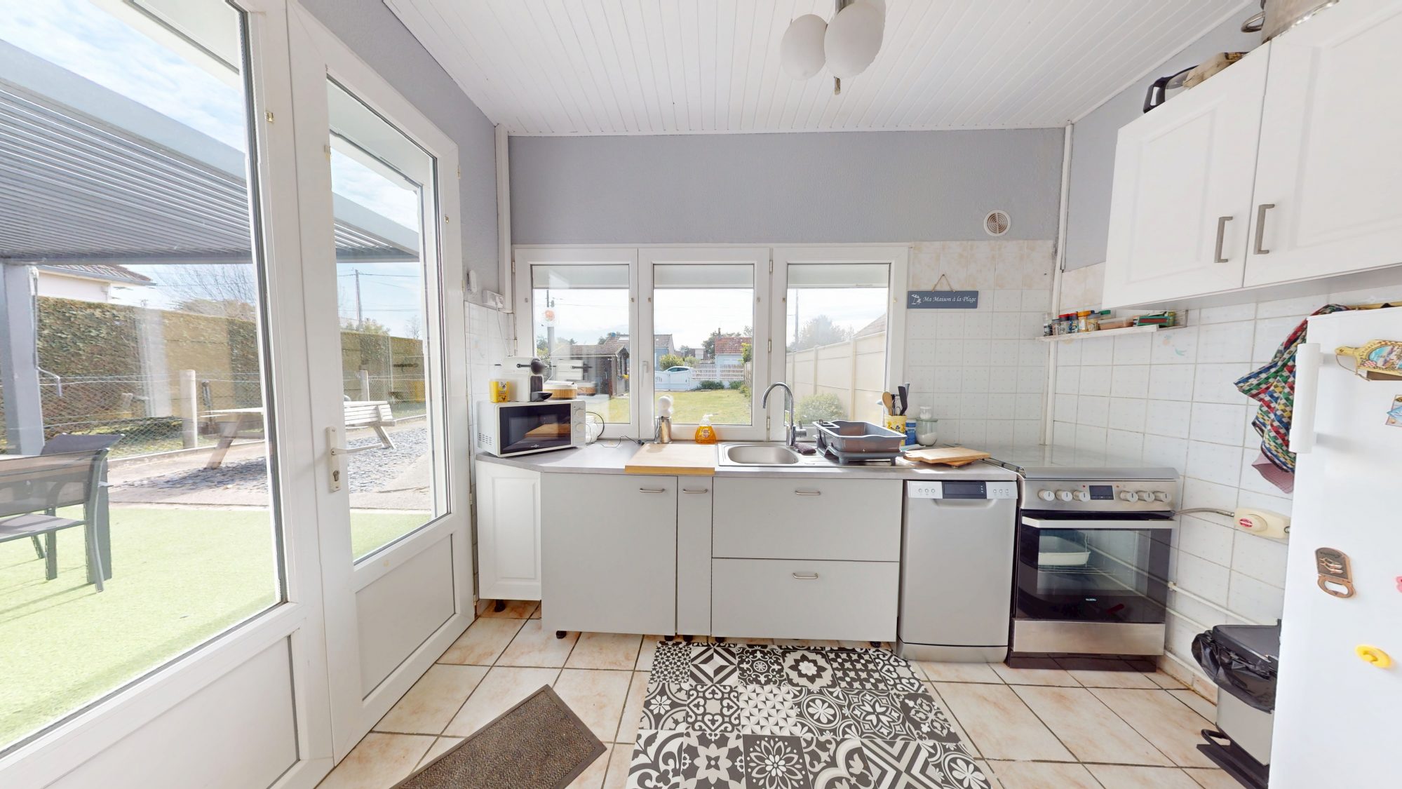 - Une première maison : cuisine, séjour, chambre, salle d'eau, WC et atelier, lavabo et WC (sur l'arrière).
