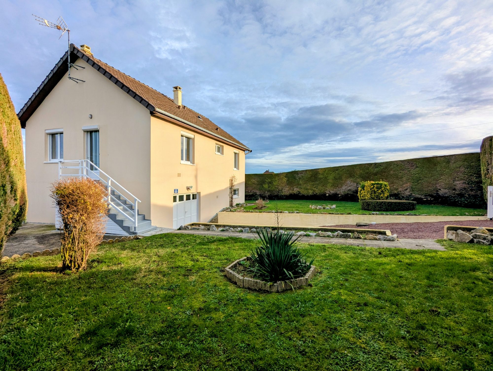 A l'extérieur vous trouverez un jardin bien entretenu à l'abri des regards sur une parcelle de 840m².
