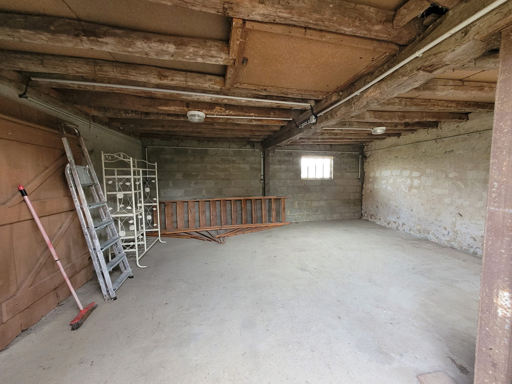 Centre-bourg de La Rouge, bâtiment en pierre, briques et parpaings, couvert en tuiles à usage de garage (44m2) avec grenier. Eau et électricité. Le tout sur un terrain clos de 481m2. Les informations sur les risques auxquels ce bien est exposé sont disponibles sur le site Géorisques : georisques.gouv.fr