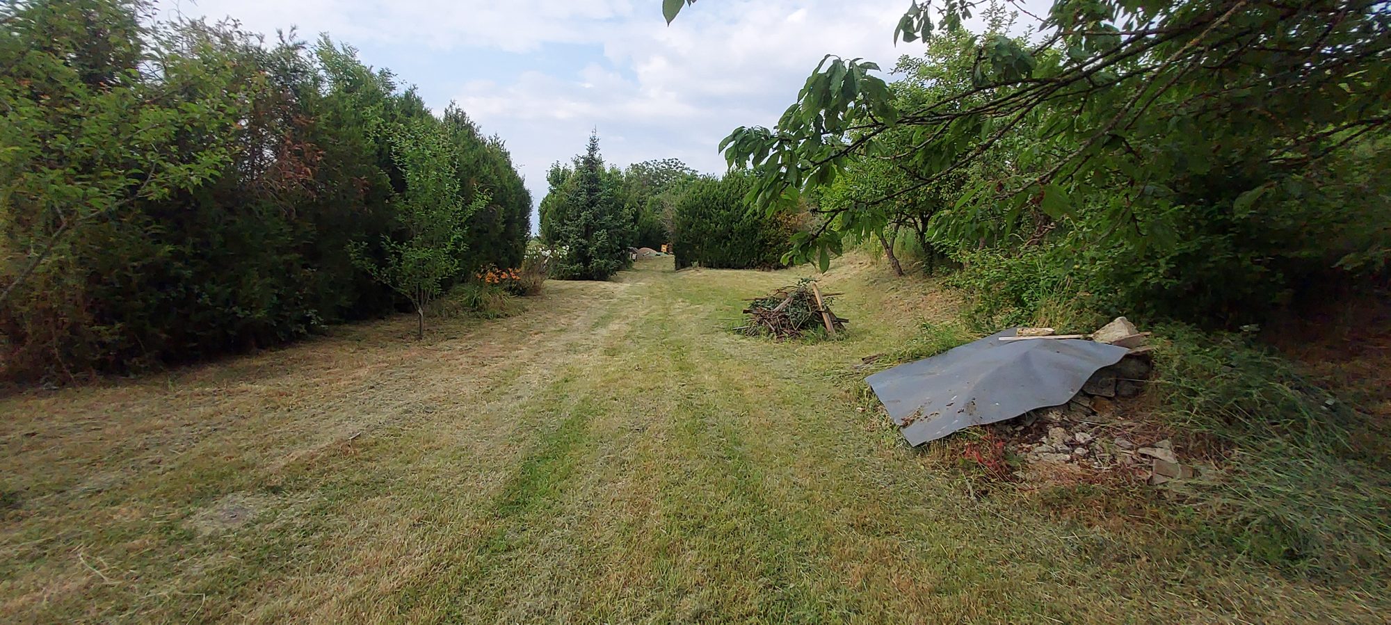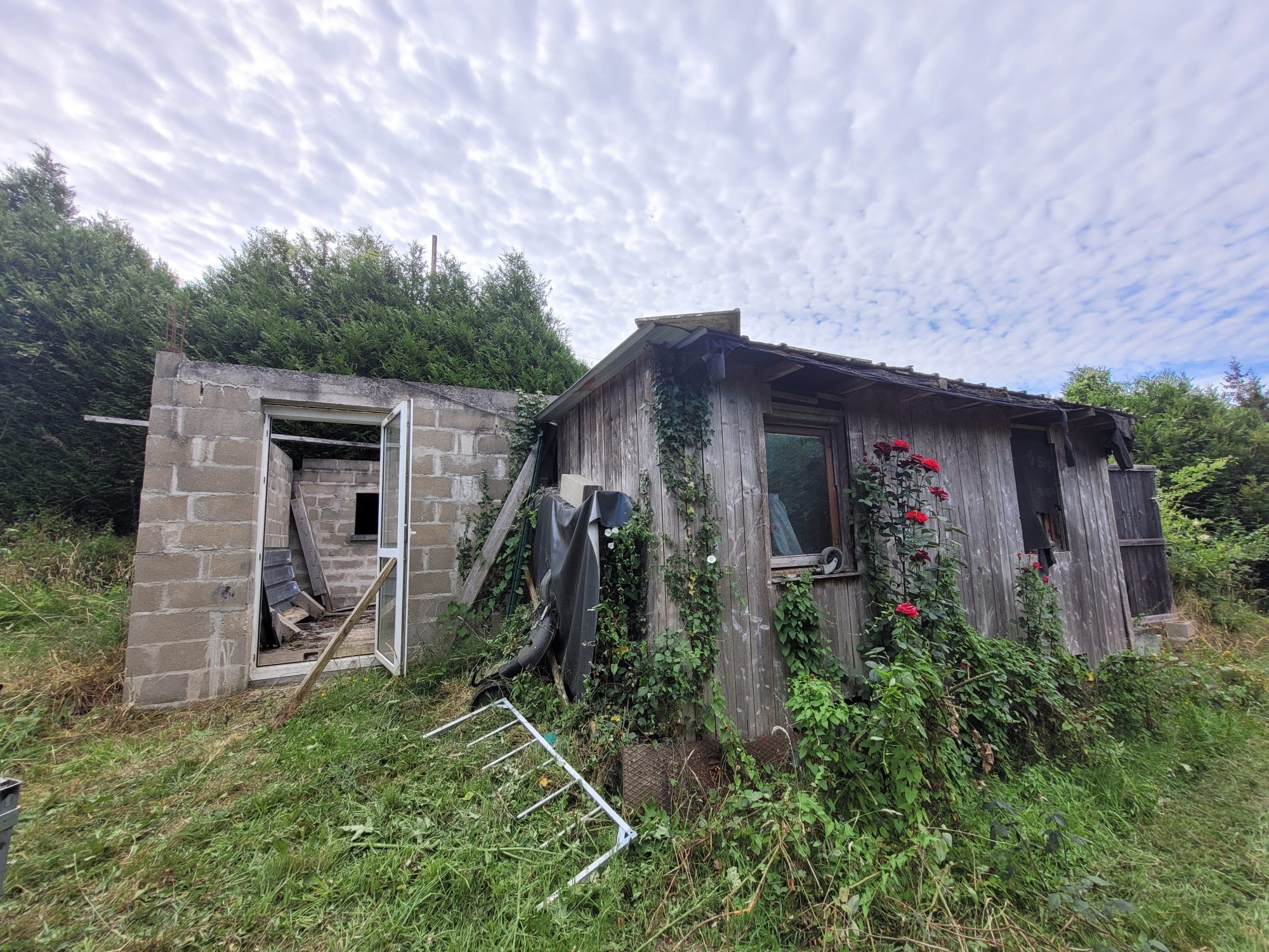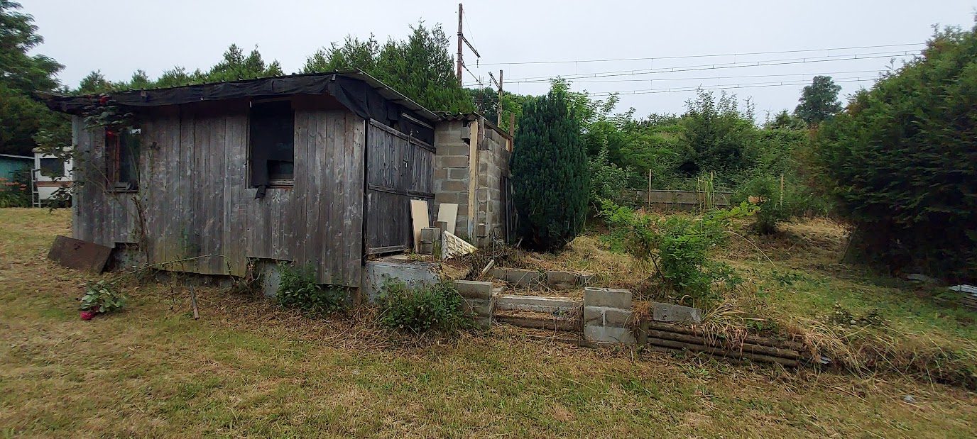 Terrain viabilisé de 1440m2 (eau, électricité et fosse toutes eaux) se lequel se trouve un bâtiment en préfabriqué à rénover et plusieurs abris.