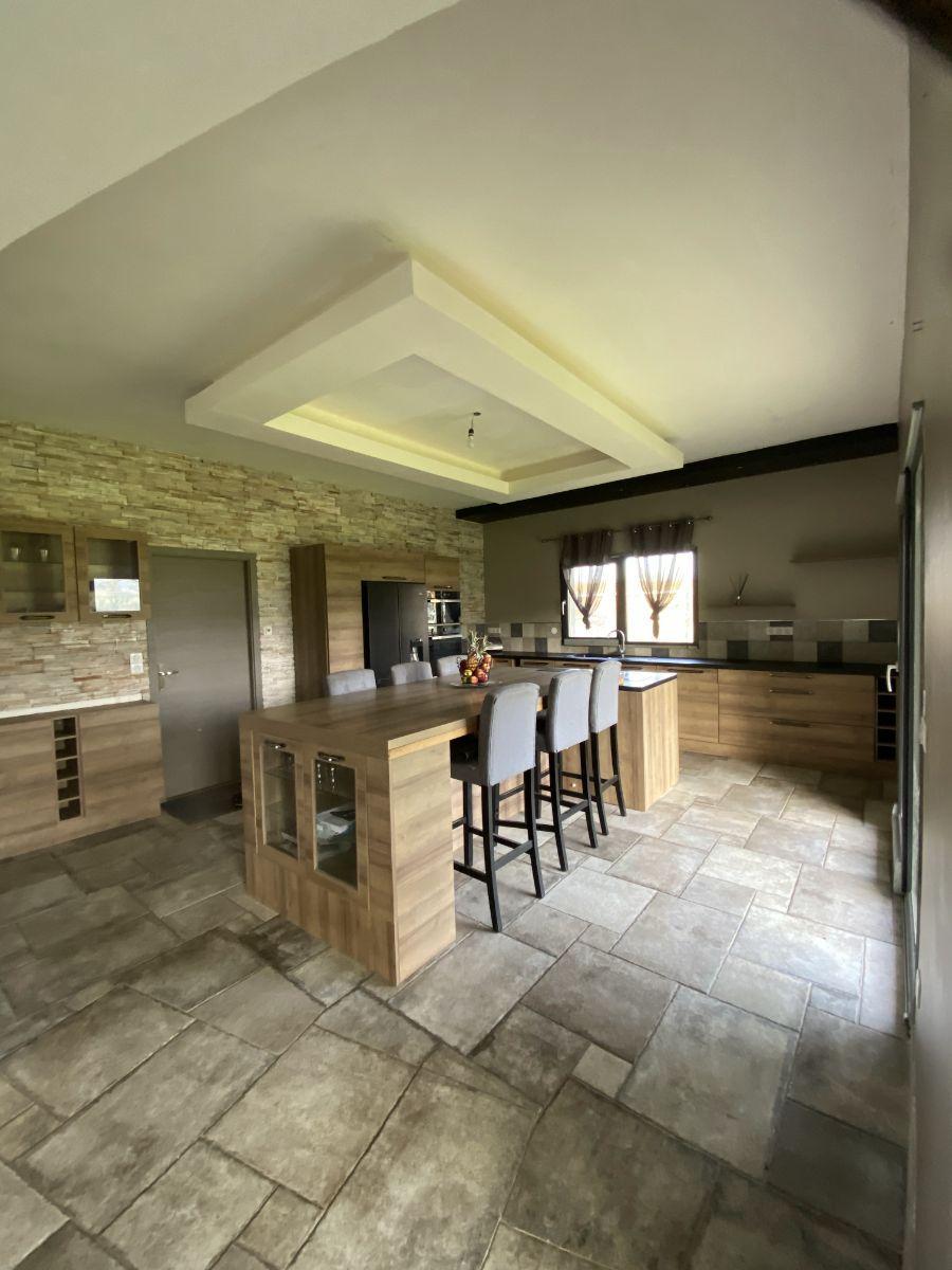 Dans un très bel environnement, au calme, maison récente nouvelle génération (construction Euromac2 bloc coffrant isolant) de type F7 comprenant une vaste pièce de vie, cuisine ouverte équipée avec coin repas, deux grandes chambres, une salle de bains avec douche, un bureau et un WC indépendant. A l'étage, palier desservant trois belles chambres dont deux accès terrasse, et un WC. Double garage attenant isolé. Le tout sur un terrain en partie clos de murs et arboré d'environ 2670 m² avec jolie vue dégagée et dépendances. .