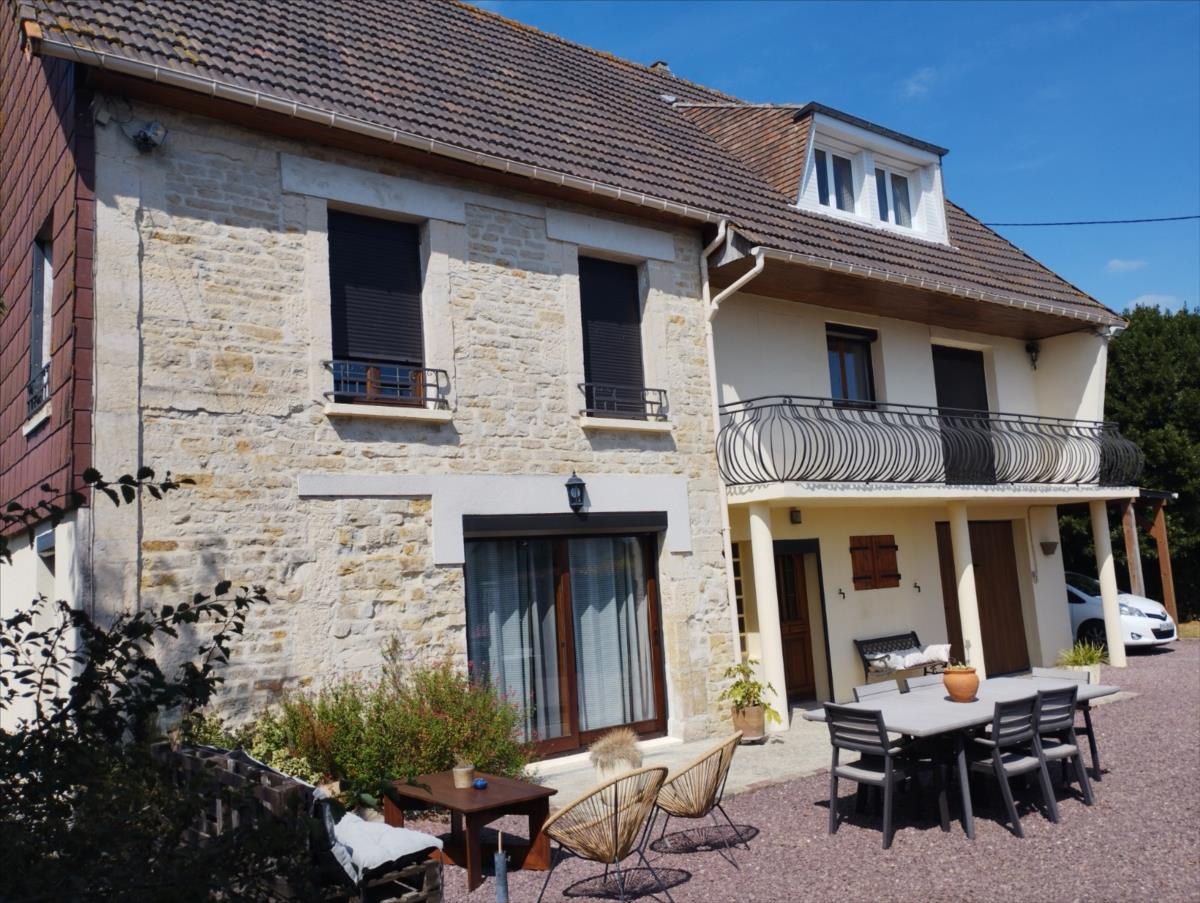 Sur un terrain de 901m², une maison d'habitation comprenant au rez-de-chaussée : hall d'entrée, couloir, salon, cuisine, cellier, salle d'eau avec WC. Au premier étage : couloir, salon avec balcon, quatre chambres, dressing, salle de bains, water-closet. Au deuxième étage : une pièce, grenier et combles perdus. Garage, appentis. Jardin autour de la maison, cour et terrasse. Etude de Maîtres Guillaume DAON et Christelle CAUCHOIS, Notaires associés. Contacter Monsieur Jérôme Perret au 02.31.75.89.19 ou au 07.71.01.30.17. Honoraires charge vendeur. Les informations sur les risques auxquels ce bien est exposé sont disponibles sur le site Géorisques : www. georisques. gouv. fr