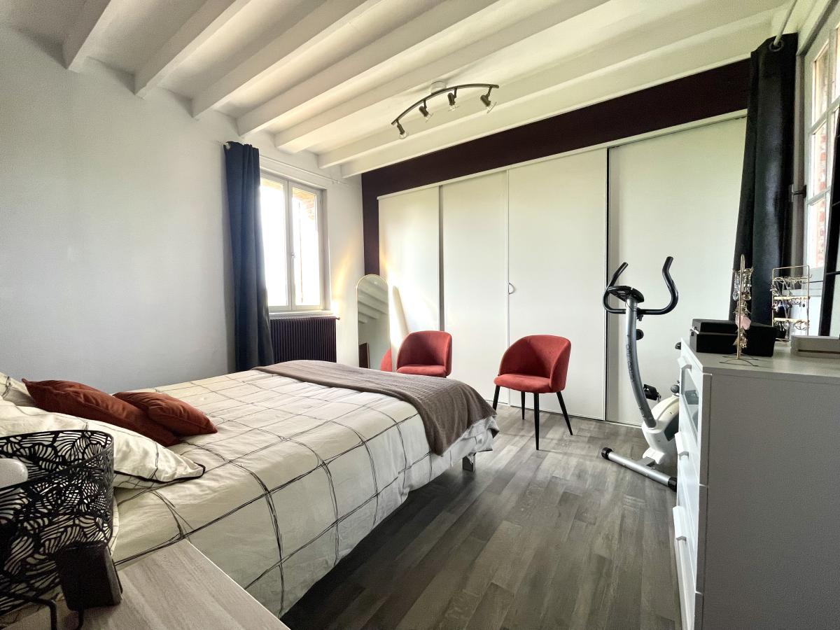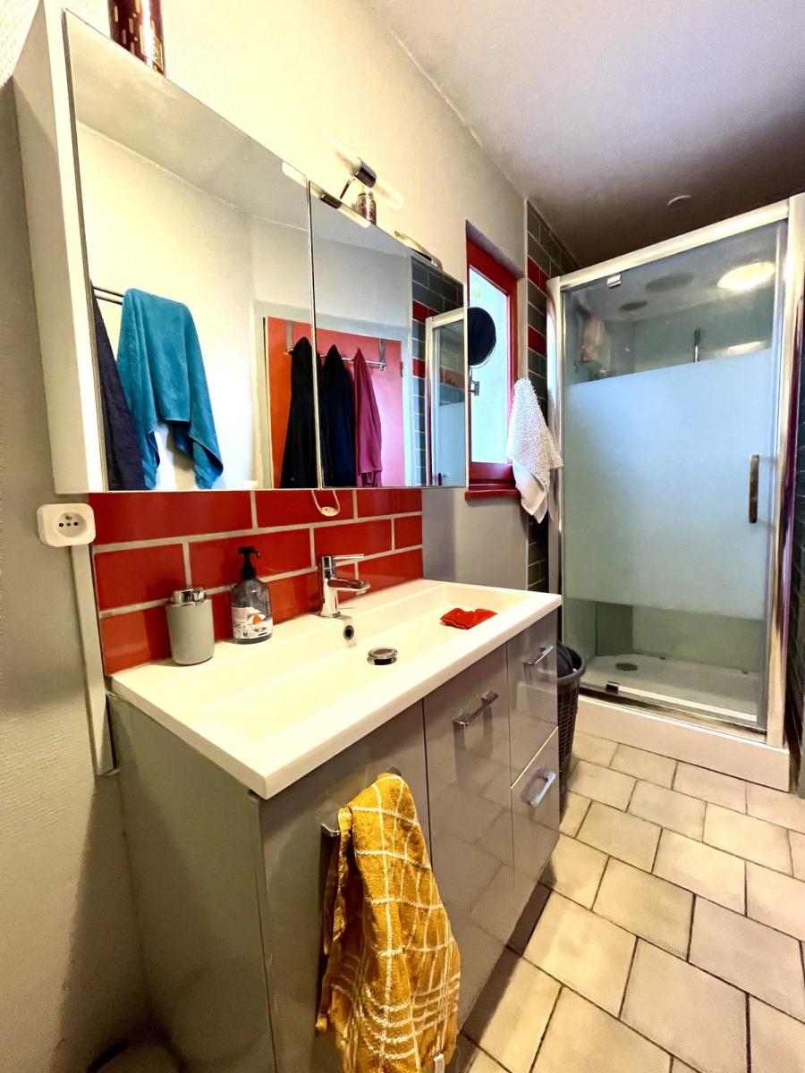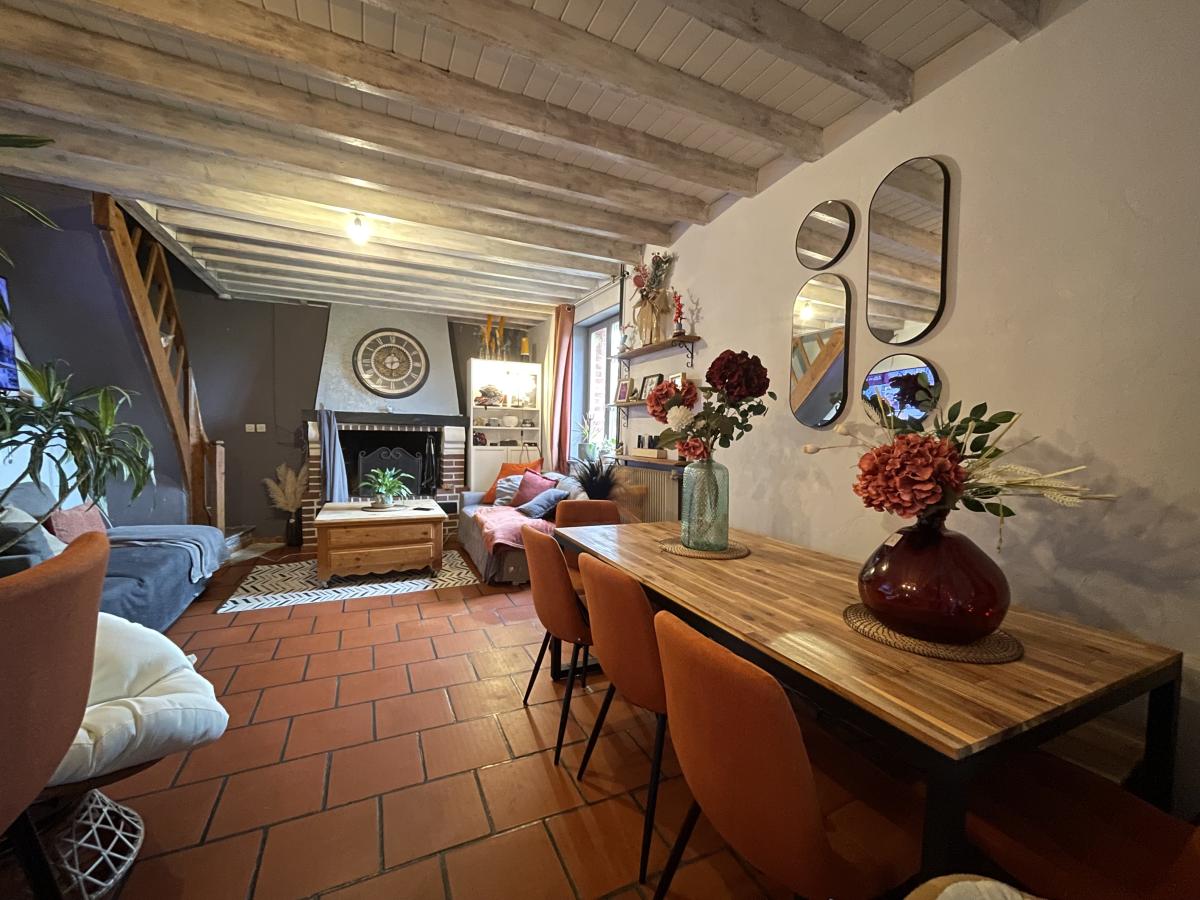 -Au rez-de-chaussée entrée desservant cuisine aménagée et équipée , séjour avec cheminée, salle d'eau avec wc .