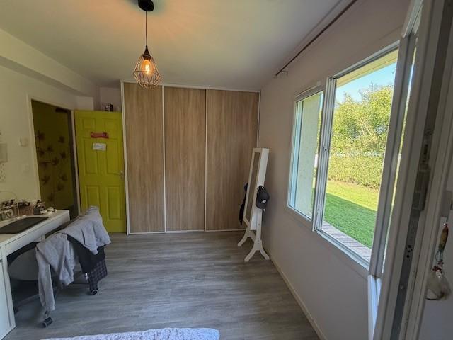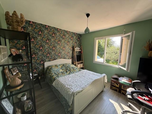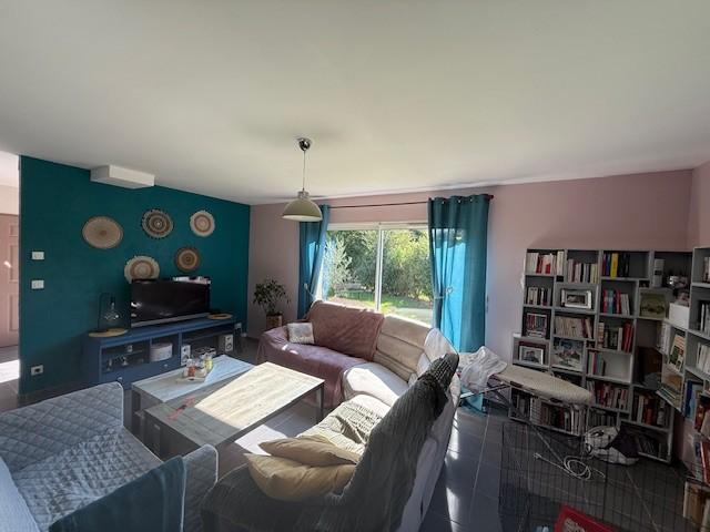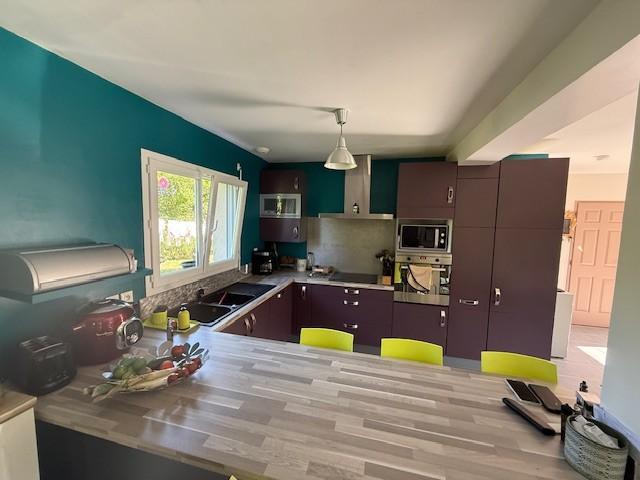 - Entrée, wc, cellier, buanderie, cuisine aménagée et équipée ouverte sur salle-salon avec conduit de cheminée, couloir, 4 chambres, salle de bains avec baignoire et douche.