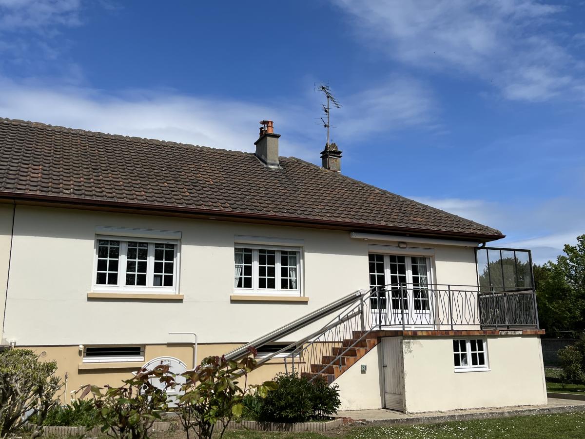 Sur sous-sol complet, maison de construction traditionnelle, jumelée sur un côté, comprenant au rez-de-chaussée surélevé : entrée avec rangements, cuisine, séjour-salon, deux chambres, salle d'eau, wc. Jardin clos.