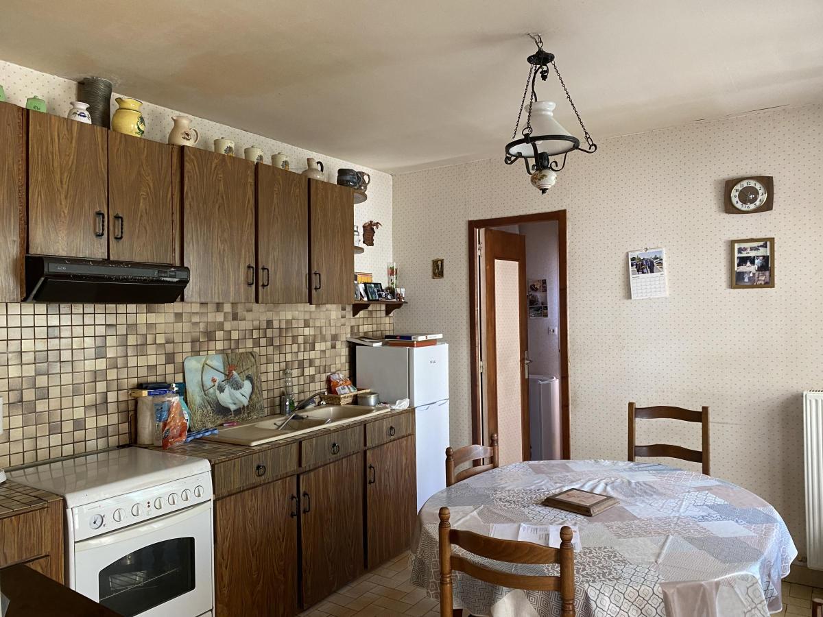 Située dans un bourg avec commerces et écoles, UNE MAISON EN PIERRES mitoyenne (S.H.99 m²) à rénover, comprenant :
