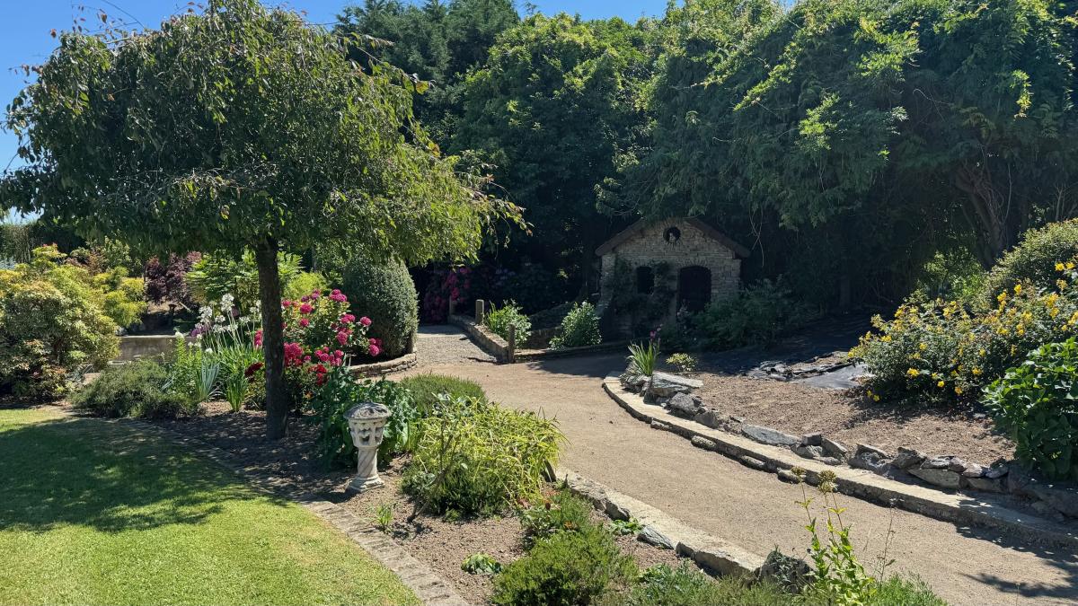 1) Dépendance en pierre couverture tôle avec terrasse et barbecue intérieur.