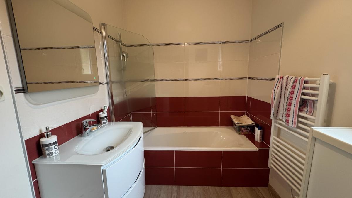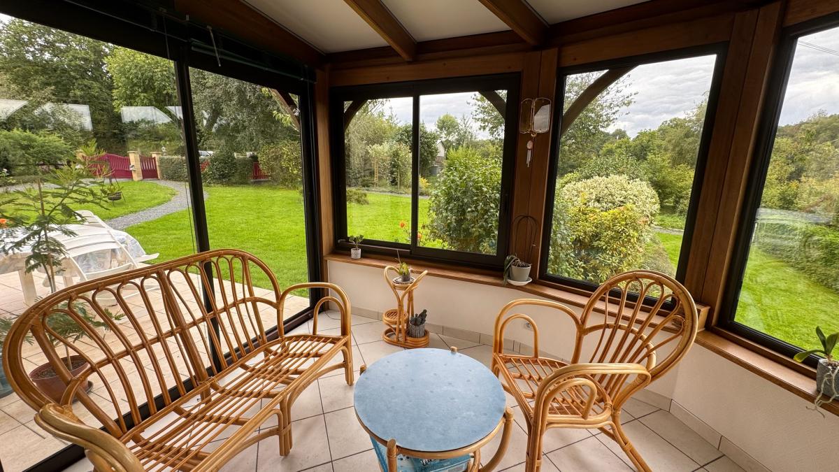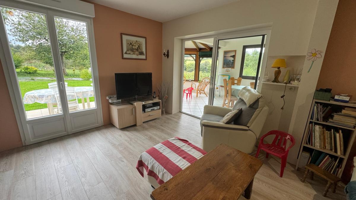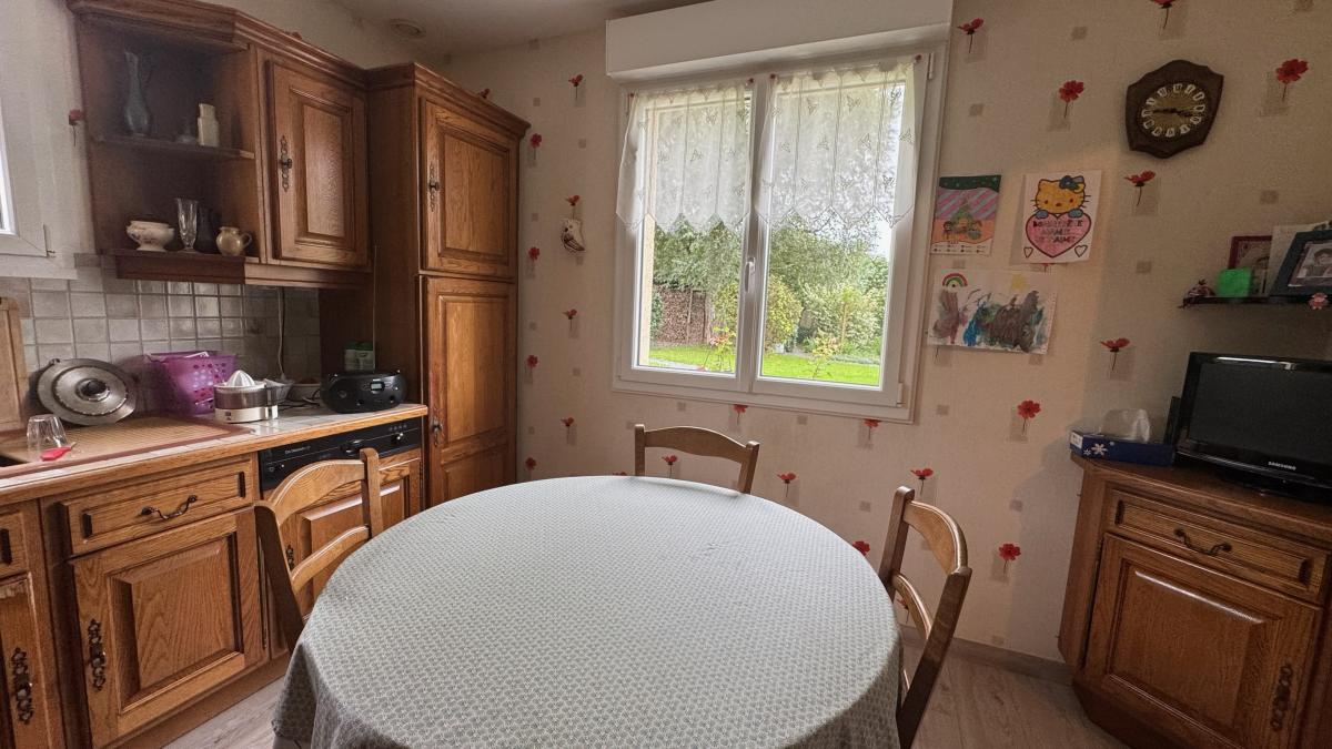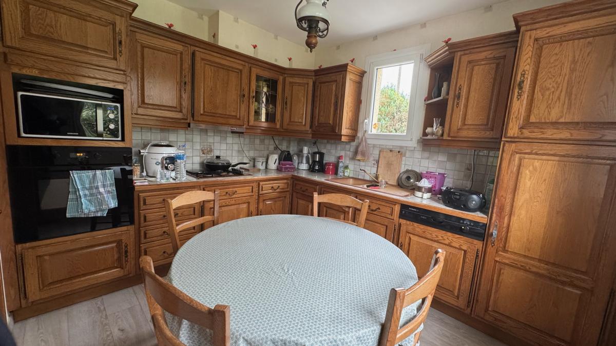 - Au rez-de-chaussée : entrée avec placard, grande véranda avec escalier donnant au sous-sol, séjour/salon de 27.57m² avec cheminée insert, cuisine de 10.26m² aménagée et équipée (LV, frigo, hotte, plaque mixte gaz/électrique, four), dégagement, chambres de 10.46m², salle de bains, WC.
