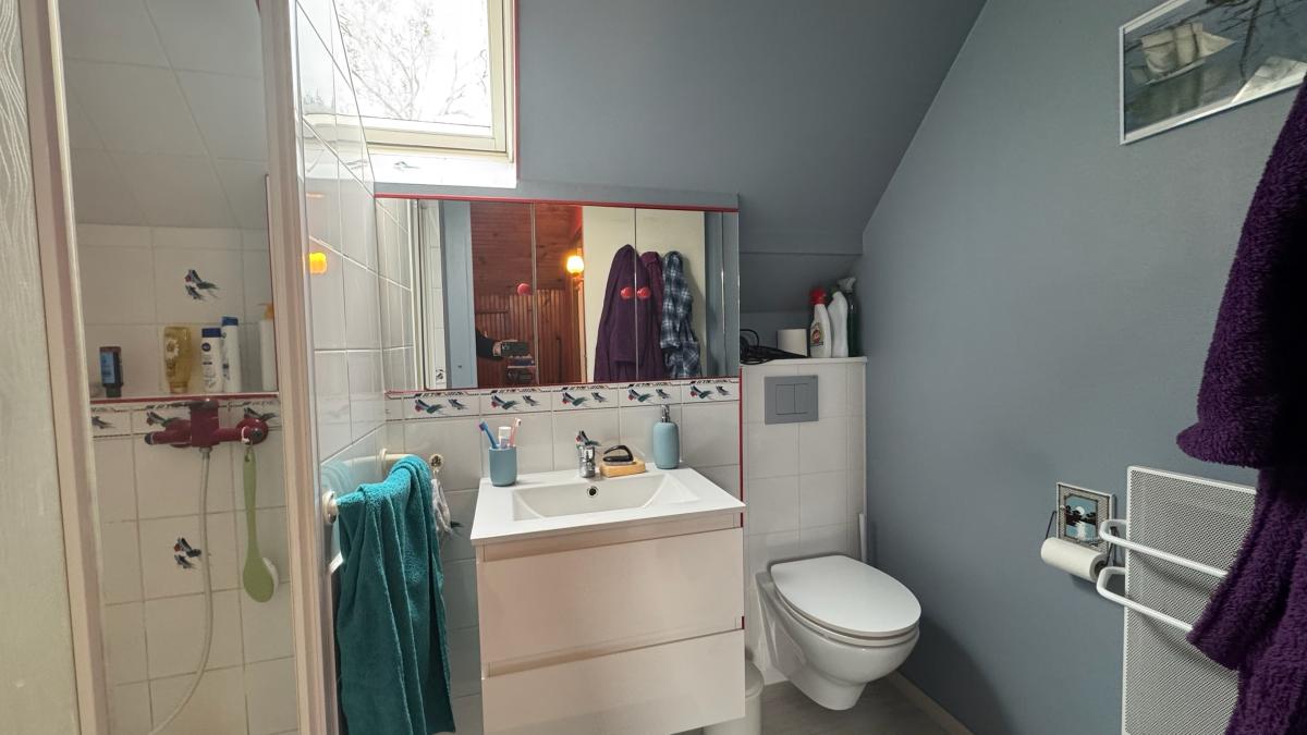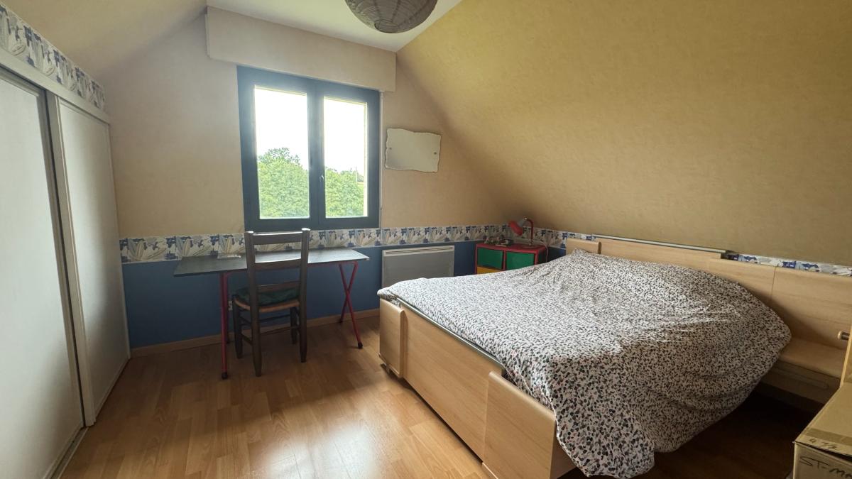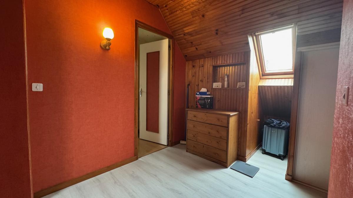 - A l’étage : palier avec placard, salle de douche avec meuble vasque et WC, chambre de 11.20m² avec placard, couloir avec placard, deux autres chambres (12.95m² et 8m²).