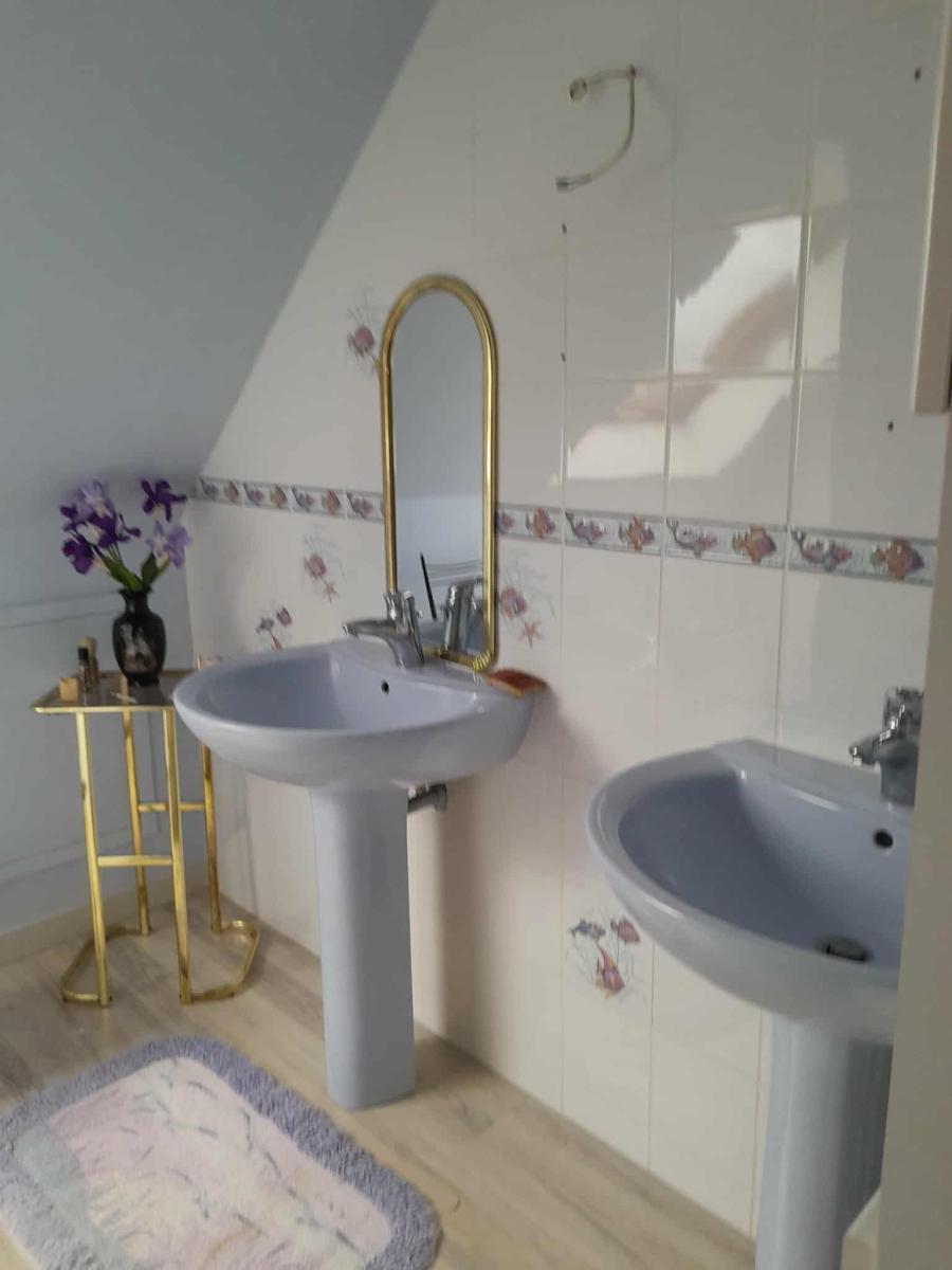 Au 1er étage : une mezzanine, deux chambres, une salle d'eau avec wc.