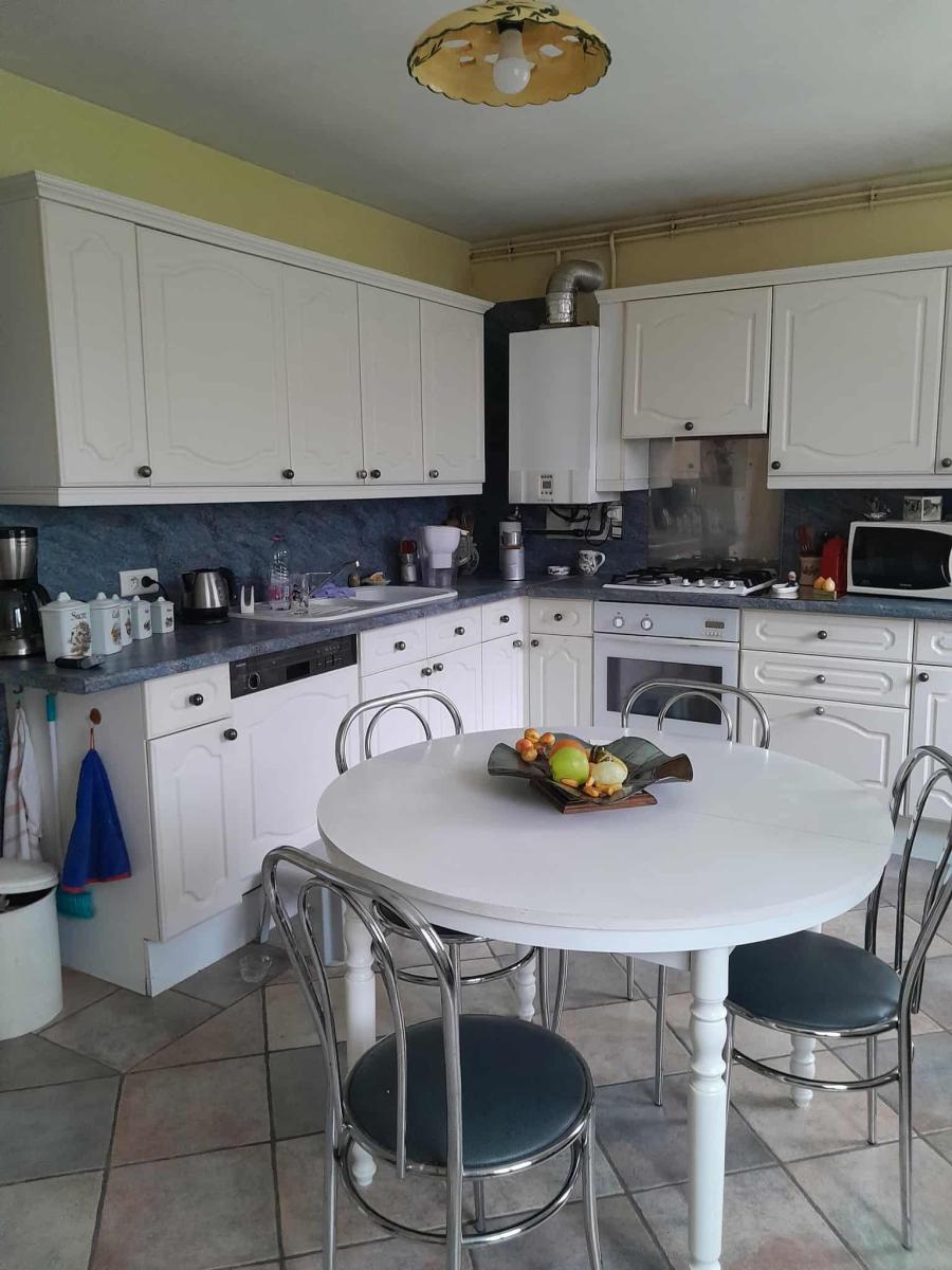 Au rez-de-chaussée : une véranda, une entrée, un grand séjour/salon, une cuisine aménagée et équipée, une salle de bains, un wc, une chambre avec placards.