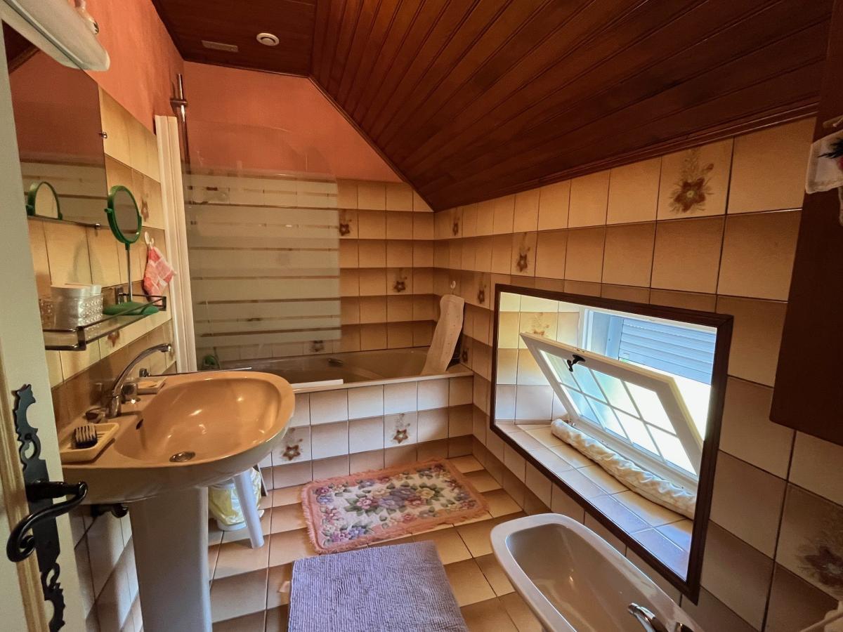 A l'étage : un palier dessert 3 chambres, une salle d'eau avec wc, une salle de bains, un wc indépendant.