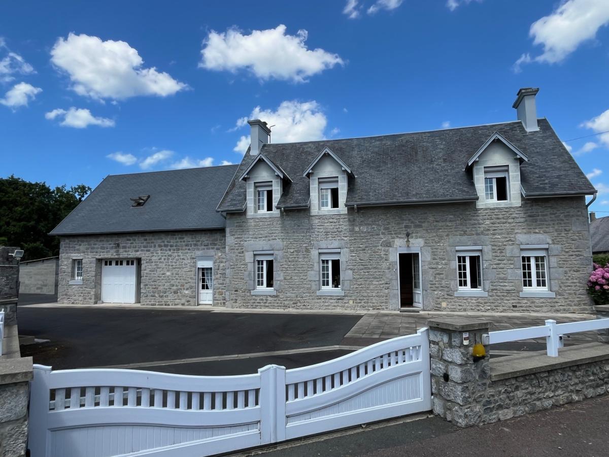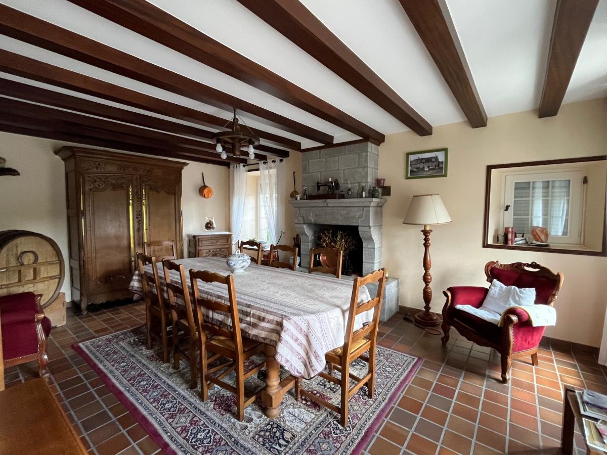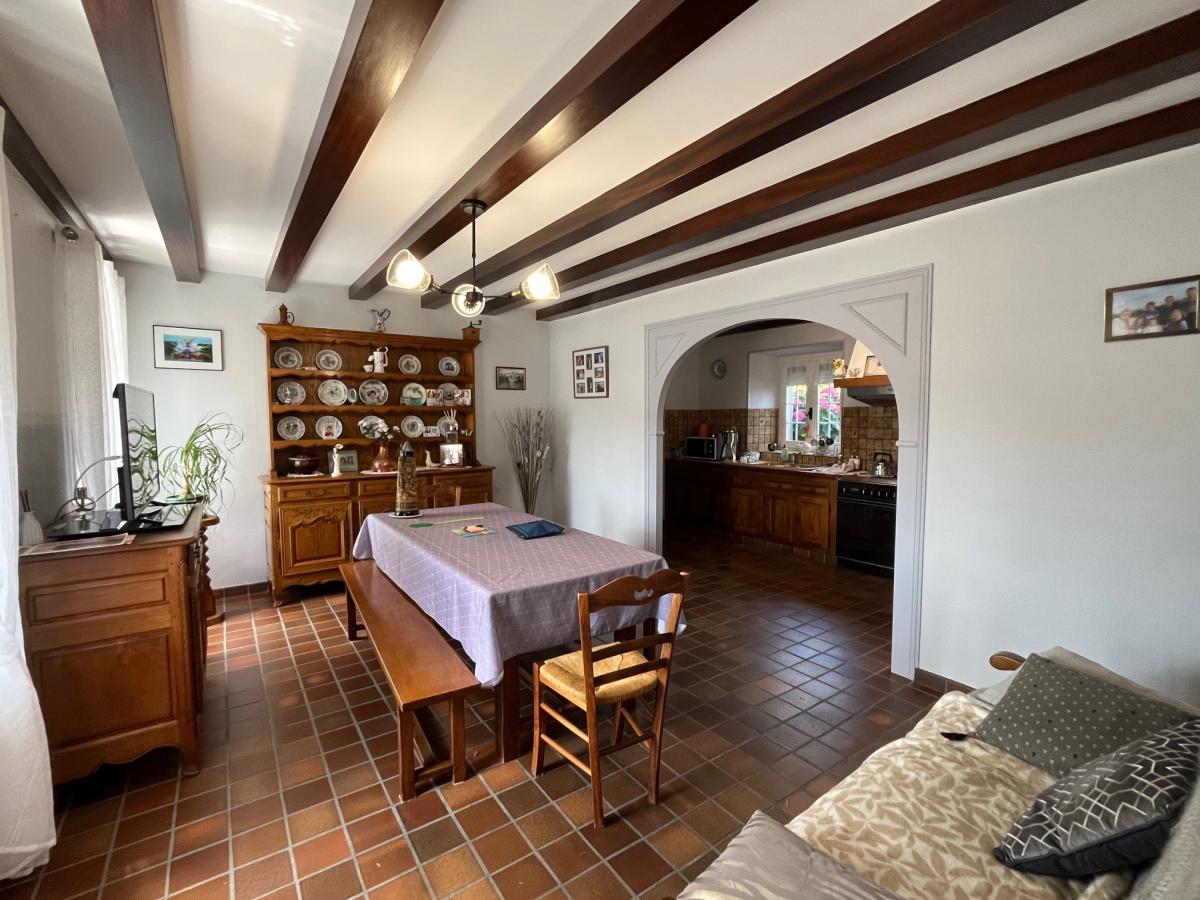 LINGREVILLE Charmante maison située dans un environnement champêtre mais à 5 mn des plages, elle comprend : entrée, une cuisine aménagée ouverte sur la salle à manger, un séjour avec cheminée, une arrière-cuisine avec chaufferie et buanderie.