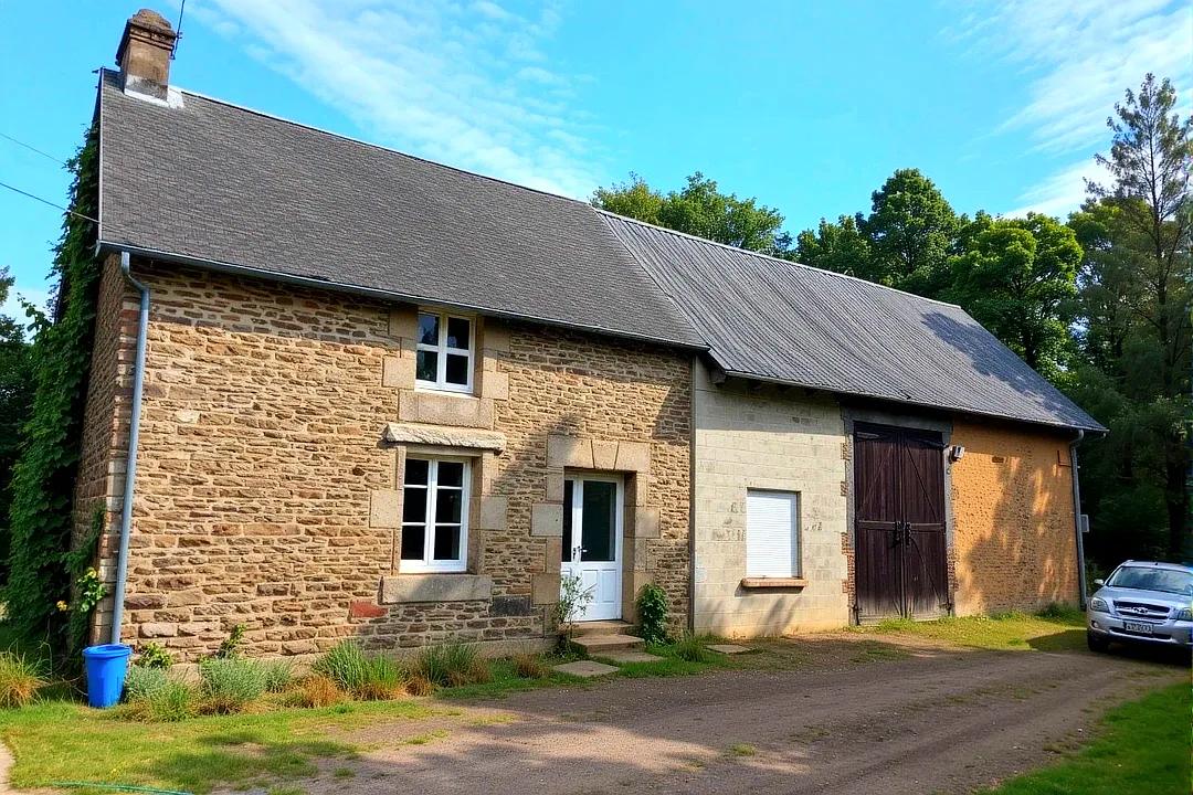 Dans une impasse, au calme, sans vis à vis, maison à rénover avec sa grange attenante comprenant : Entrée, pièce de vie avec coin cuisine, chambre avec une pièce, autre pièce, dégagement, salle d'eau, wc, chaufferie Grange attenante (possibilité de rénover en habitation), deux hangars en toles, ancienne étable, dépendance en torchis, dépendance en pierres et tuiles. terrain autour arboré