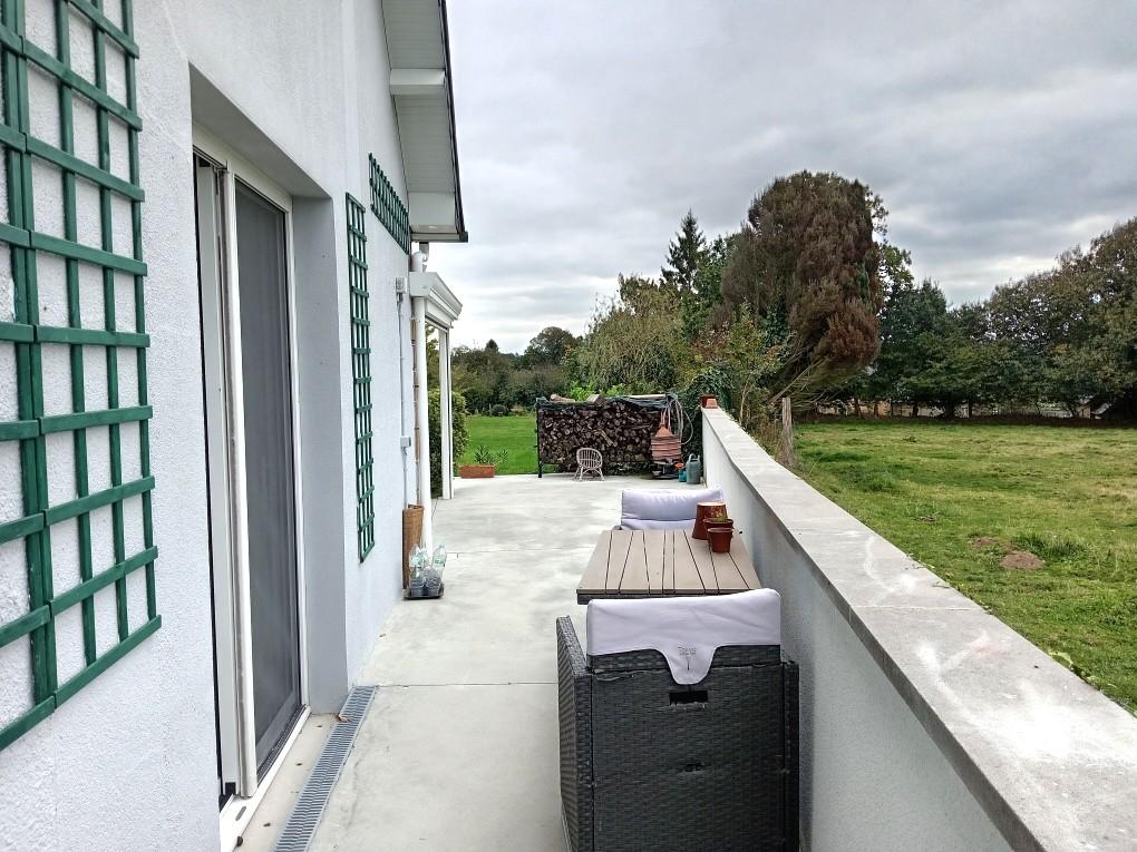 Pergola devant exposée SUD avec store, terrasse exposée Ouest, abri de jardin, aire de stationnement.