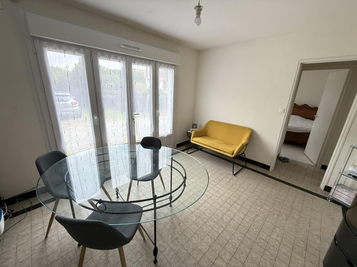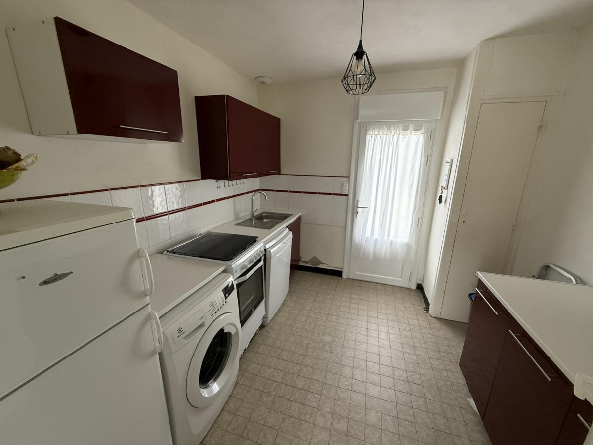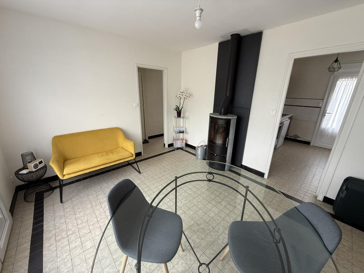 Entrée, séjour avec poêle à bois, cuisine aménagée, deux chambres, salle d'eau, WC.