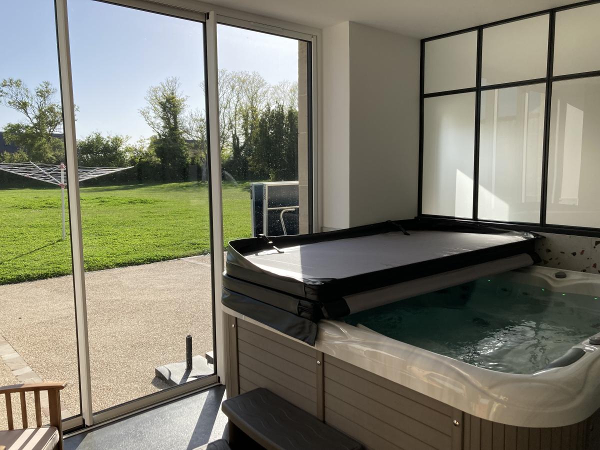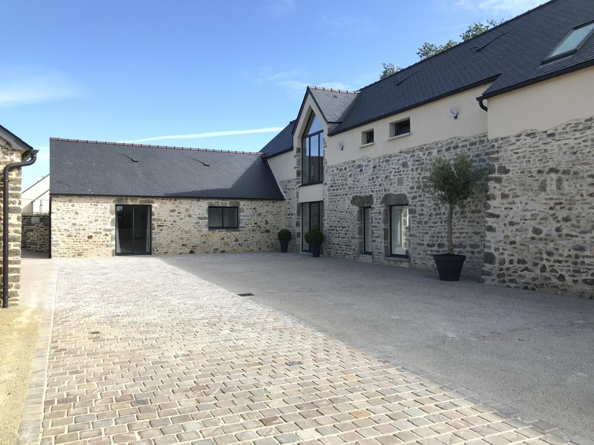 1°) Maison principale de 300 m² comprenant: entrée avec placards, WC avec lave-mains, vaste séjour avec cuisine ouverte équipée avec ilot, espace détente avec SPA + sauna + salle d’eau avec WC , chaufferie/buanderie, autre cuisine équipée, une chambre avec salle d’eau et WC privatifs. A l’étage : salon en mezzanine, 5 chambres dont deux avec salle d’eau/WC privatifs et deux avec salle d’eau/ WC + baignoire privatifs. Cour devant avec deux garages/atelier + grenier, salle de sport à la suite. jardin derrière avec grande terrasse.