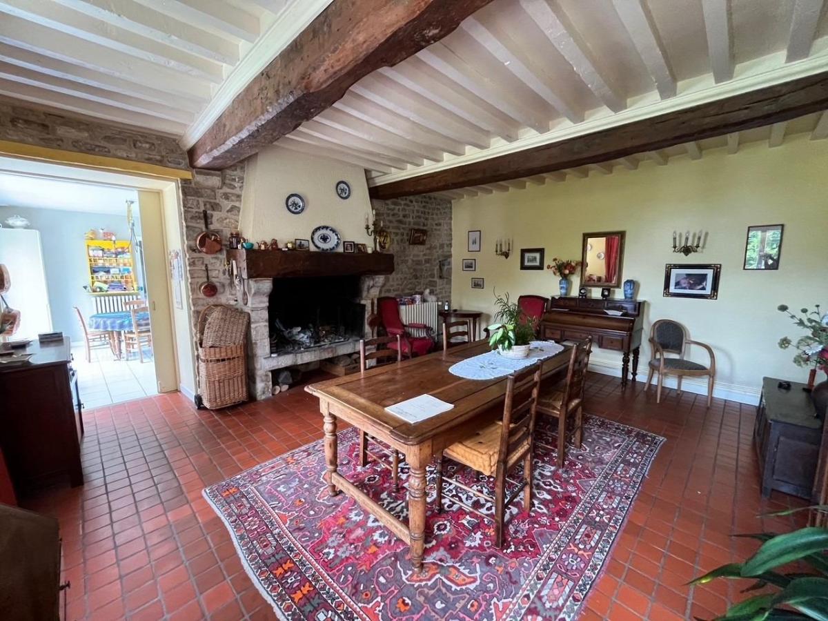 Face au marais, maison d'habitation en pierres couverte en ardoises, comprenant : Hall d'entrée avec départ d'escalier, salon avec cheminée 33 m² (pierres apparentes), salle à manger avec cheminée 30 m², cuisine équipée (éléments hauts et bas, plaque de cuisson, hotte, four, lave-vaisselle) avec grande baie, arrière cuisine, buanderie, wc avec lave-mains, douche, A l'étage : trois chambres avec placard 12 m², 12 m² et 15 m², salle de bains (baignoire, douche, deux vasques), wc, Sous combles : bureau 15 m², une chambre 20 m², salle de douches, wc, Garage accolé 50 m² avec haute porte motorisée, Autre dépendance à l'entrée à usage de garage 40 m², deux pièces carrelées à la suite, Une dépendance aménagée en gîte, comprenant séjour avec cuisine ouverte aménagée, salle de douches avec wc, à l'étage une chambre en mezzanine, Grand abri en bois, cave, chenils, Terrain arboré avec mare (source), 4509 m²  - Très bel environnement - Chauffage par pompe à chaleur - Terrasse - Fenêtres PVC en façade Montant estimé des dépenses annuelles d'énergie pour un usage standard entre  1240 € et 1740 € : prix moyens des énergies indexés au 01/01/2023 (abonnement compris) Les informations sur les risques auxquels ce bien est exposé sont disponibles sur le site Géorisques : www. georisques. gouv. fr