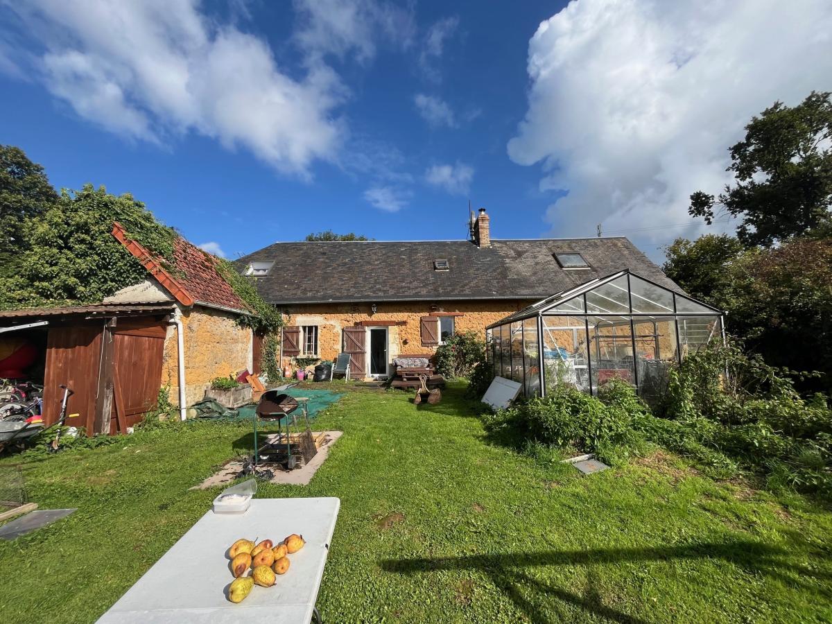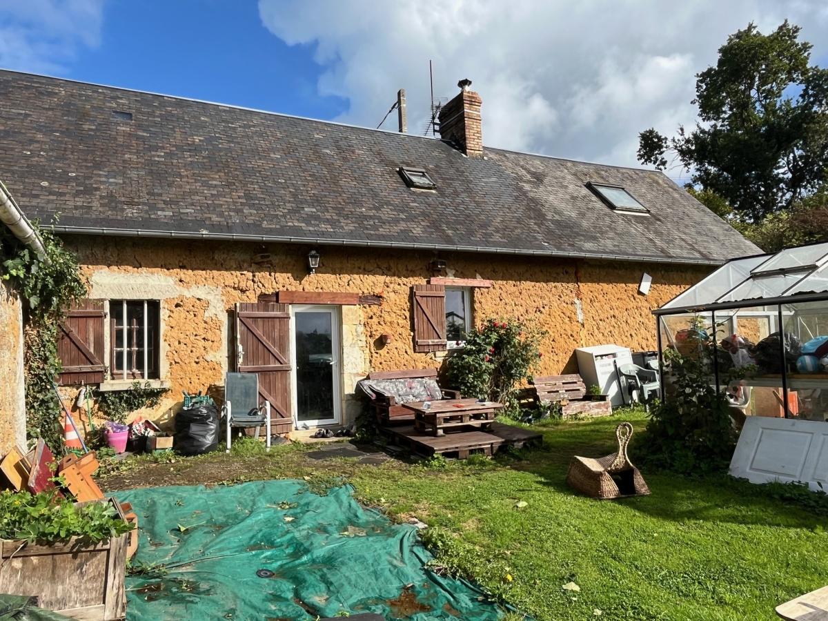 Méautis, maison d'habitation en pierres et masse couverte en ardoises, comprenant : Cuisine avec cheminée (poêle à bois) 24 m², séjour avec départ d'escalier 20 m², une chambre en mezzanine sur le dessus, salle de bains avec wc, A l'étage deux chambres, Cellier attenant Terrain 800 m²