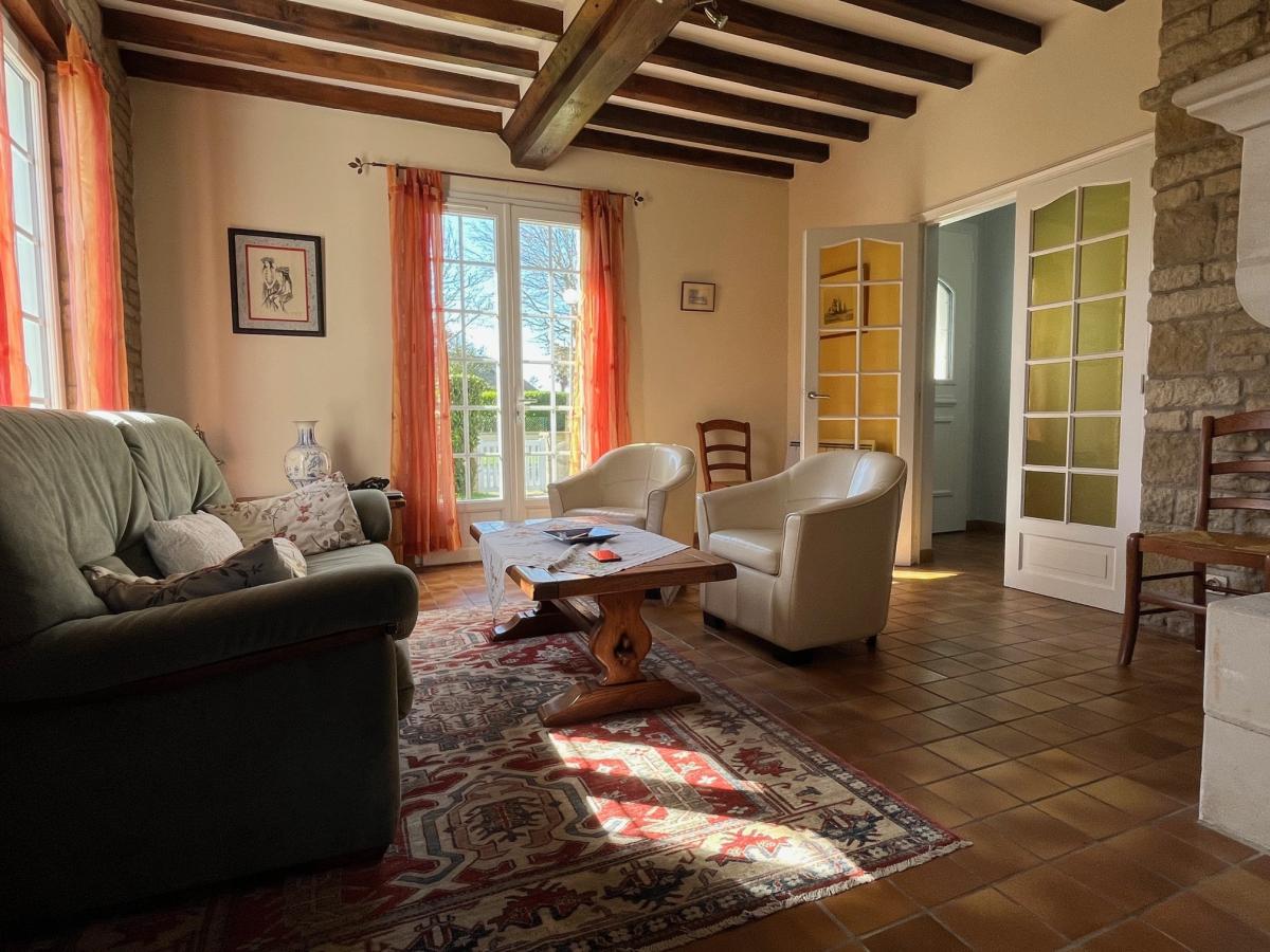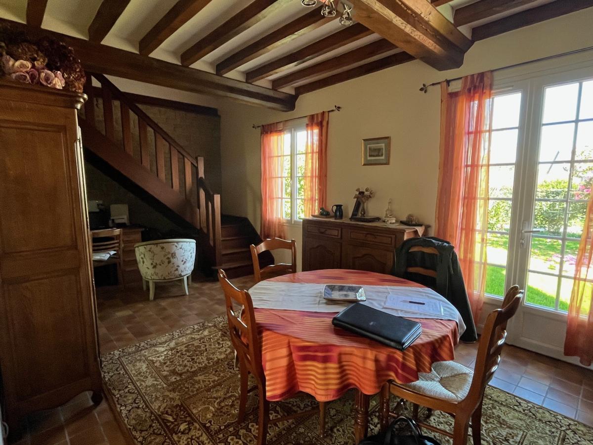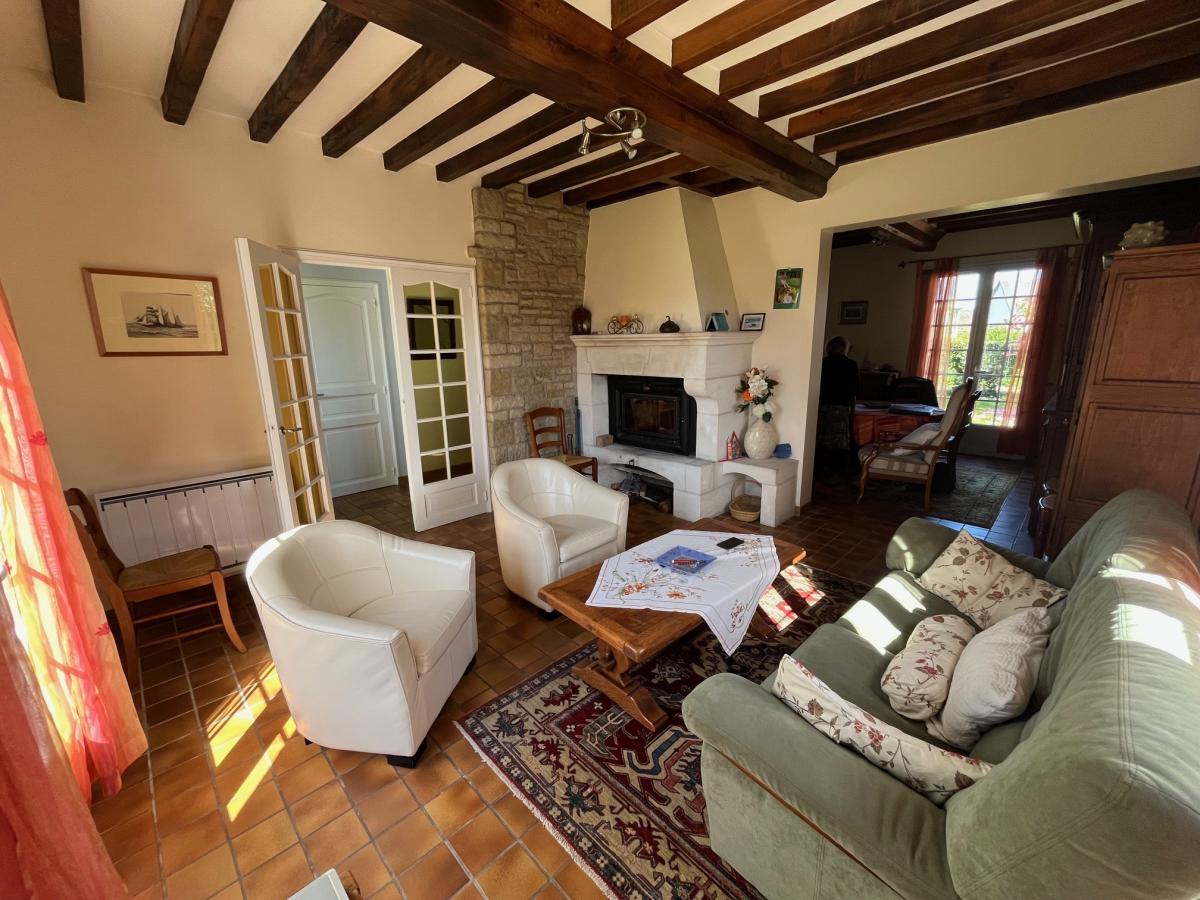Entrée, séjour / salon avec cheminée insert 30 m², cuisine équipée (éléments hauts et bas, plaque de cuisson, hotte, four, lave-vaisselle, réfrigérateur, table à manger) 15 m², une chambre avec placard 12 m², petite salle de douches avec wc,