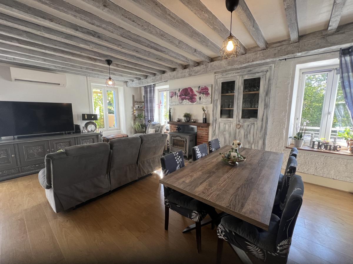. Au RDC : séjour/salon avec poêle à bois, cuisine équipée, salle d'eau, WC ;