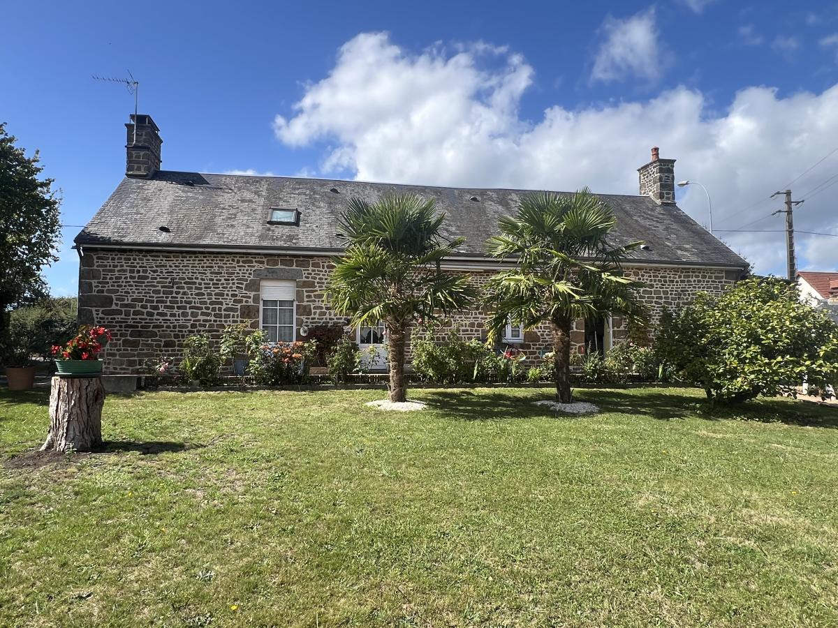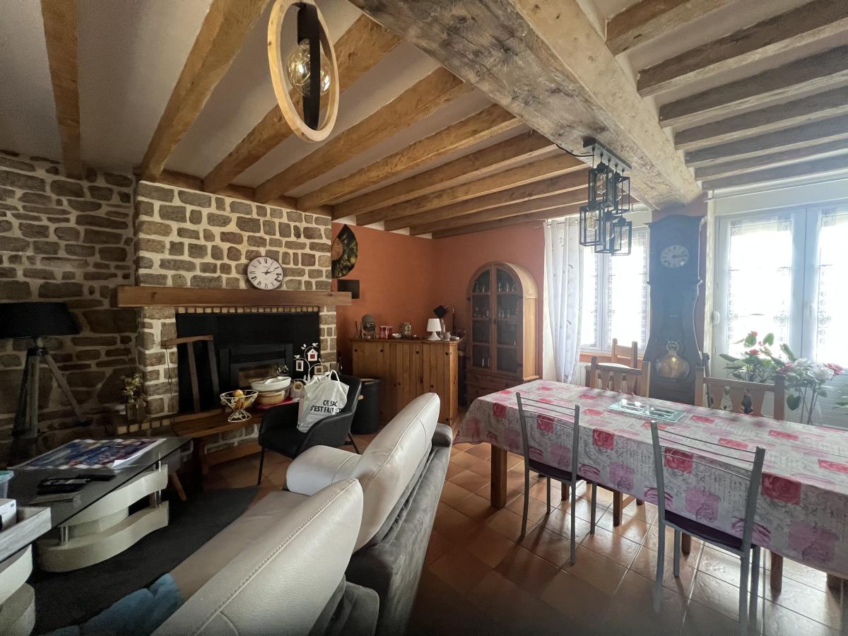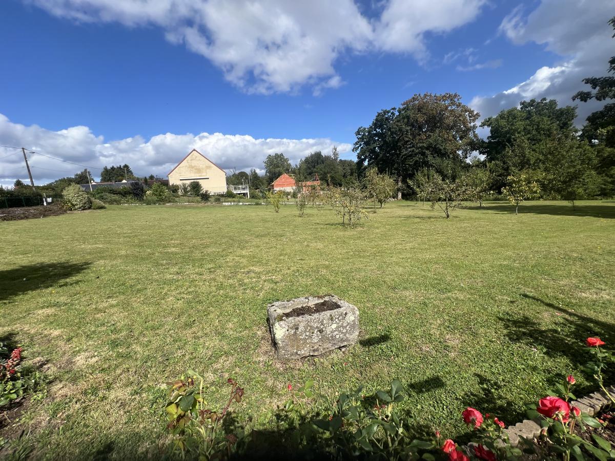 Chauffage au gaz de ville, fenêtres PVC double vitrage . Terrasse dallée avec store banne donnant sur grand terrain plat de 3100 m² classé en zone constructible.
