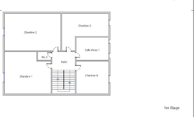 1er étage : Palier desservant 4 chambres dont une avec un lavabo et un dressing - Salle d’eau avec WC